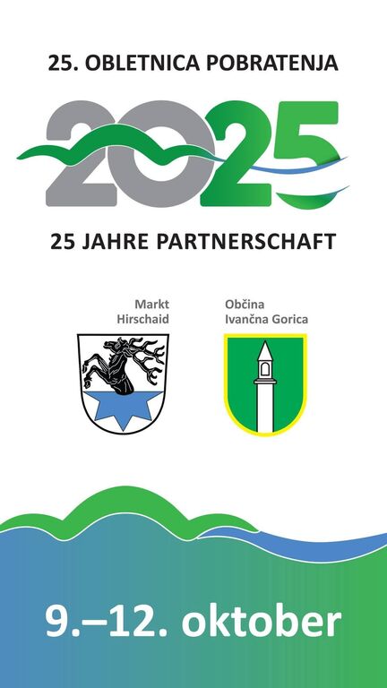 Med 9. in 12. oktobrom v Ivančni Gorici praznujemo 25 let prijateljstva med občinama Ivančna Gorica in Hirschaid! Skupaj z našimi prijatelji iz Nemčije bomo obeležili četrt stoletja sodelovanja, izmenjav in pristnih vezi, ki presegajo meje.