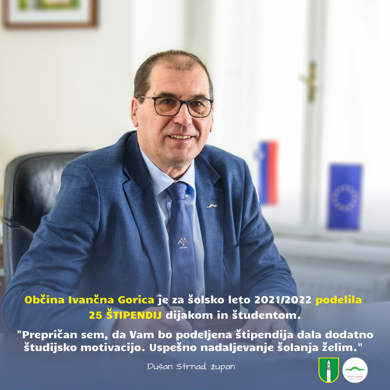 Župan Dušan Strnad je v teh dneh podpisal pogodbe o štipendiranju v šolskem letu 2021/2022. Občina Ivančna Gorica dodeljuje štipendije dijakom in študentom, kot pomoč pri njihovem rednem šolanju. Sredstva za štipendije se zagotavljajo v proračunu občine, podeljujejo pa se za tekoče študijsko leto.
