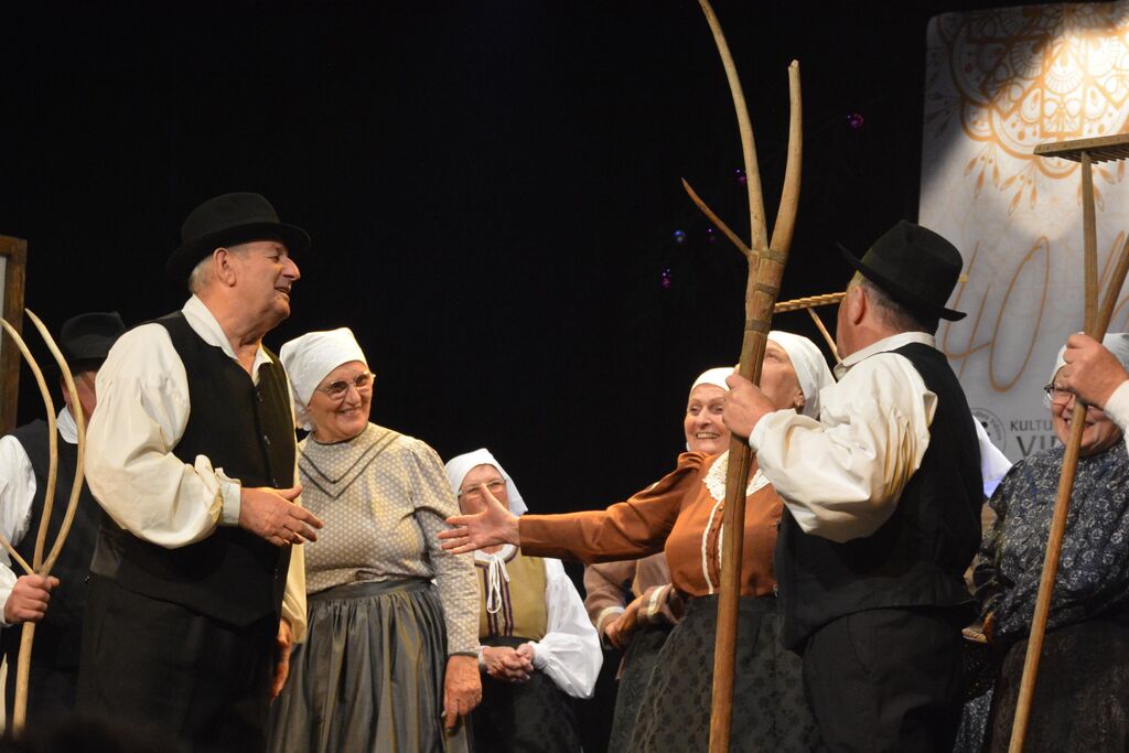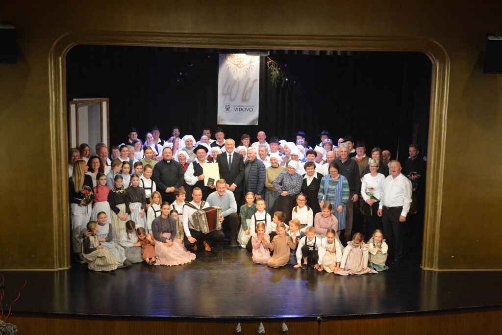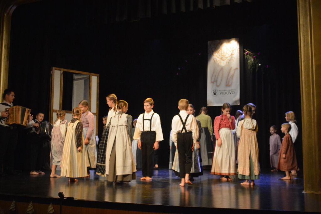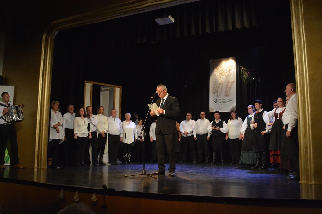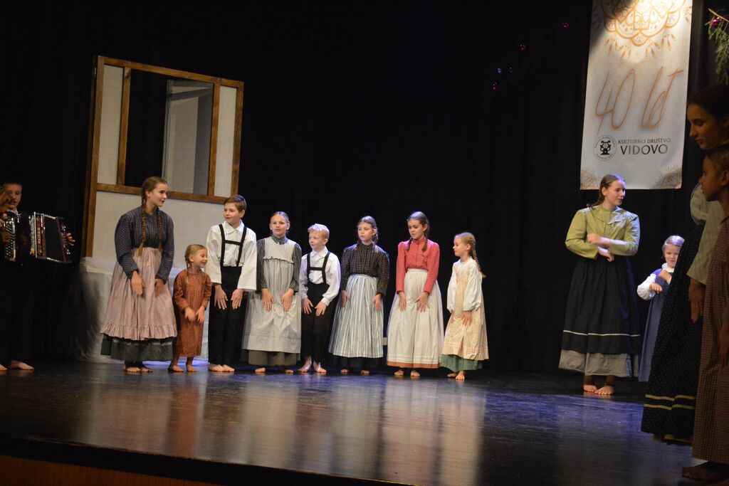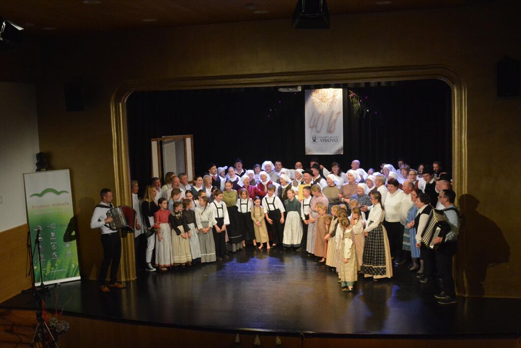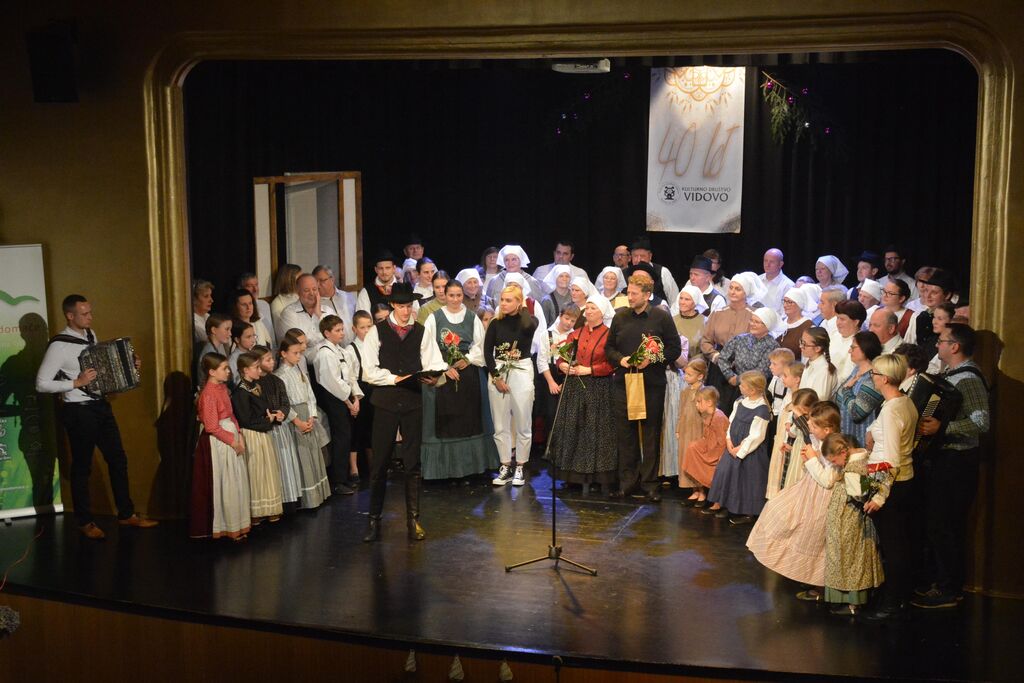 Osrednji del programa prazničnega večera je bil nastop vseh skupin KD Vidovo, ki so vsaka na svoj način sodelovale v pripovedovanju zgodbo z naslovom »Jaz sem si pa nekaj zmislu. Nastopili sta starejša in mlajša otroška foklorna skupina, odrasla folklorna skupina in veteranska folklorna skupina. Prav tako sta se na zanimiv način predstavila oba pevska zbora in gledališče Vidovo. Glavna tema zgodbe pa je bilo obujanje starih običajev, vasovanje in spomini na minule čase iz vaškega vsakdana.