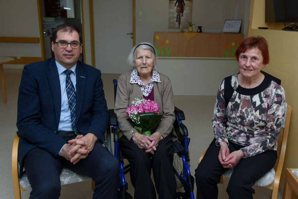 Župan Dušan Strnad je v Domu starejših občanov Grosuplje, obiskal občanko Ano Verbič iz Hrastovega Dola, ki je dopolnila devetdeset let. Ob tej priložnosti ji je izročil šopek rož ter zaželel predvsem veliko zdravja.