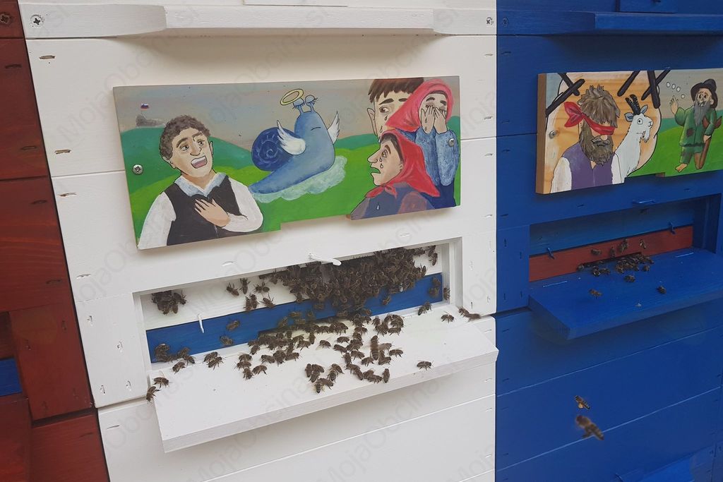 Čebelnjak je postavljen iz masivnega lesa v velikosti 4 x 5 metrov, vsebuje dvajset panjev, katere krasijo poslikane panjske končnice, ki predstavljajo Jurčičevo delo Kozlovske sodbe v Višnji Gori. Skrb za čebelnjak in čebele sta prevzela domača čebelarja in člana Čebelarskega društva Stična, Alojz Miklič in Franc Bobnar. Pred časom sta vanj naselila svoje čebelje družine, ki pa se, kot kaže, v Višnji Gori počutijo prijetno in domače.