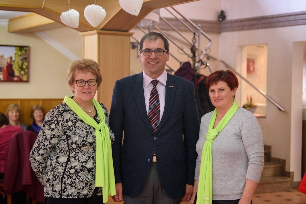 Župan Dušan Strnad v družbi nekdanje predsednice (na sliki levo) in nove predsednice (desno).