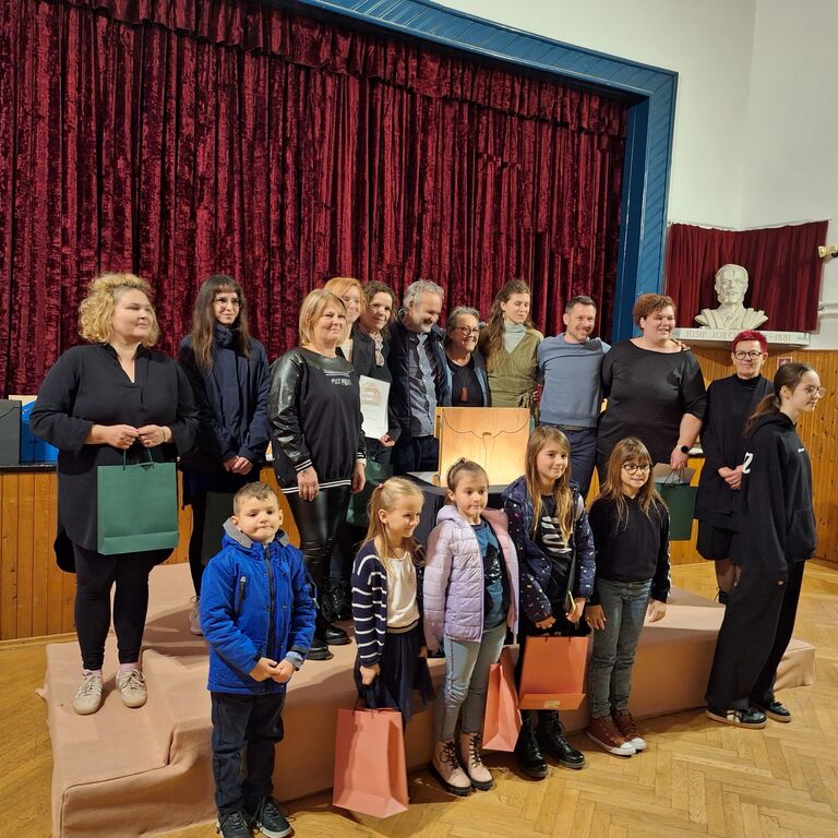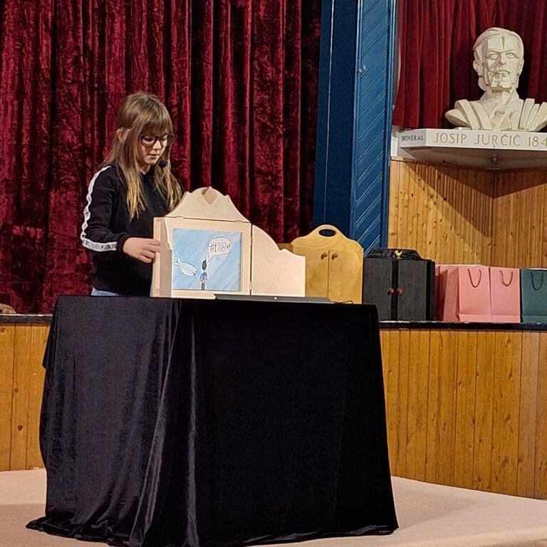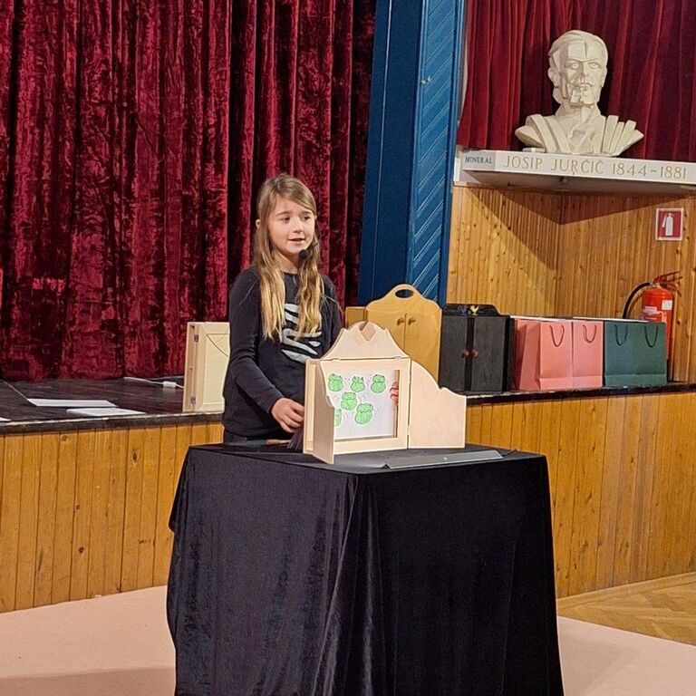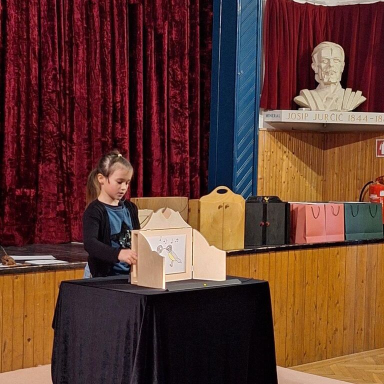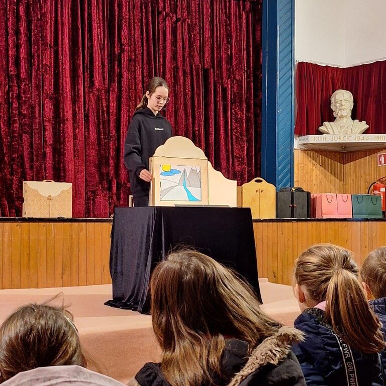 Njihova mentorica, ki je za ogrevanje nastopila s kamišibajem Pripovedka o beli kači (napisal jo je Josip Jurčič), jim je podelila priznanja, da nikoli ne bodo pozabili prvih korakov na kamišibajskem odru.