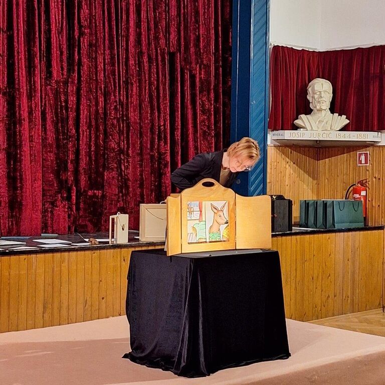 Predsednice Društva kamišibaj Slovenije Jelene Sitar se dogodka ni mogla udeležiti, saj je imela istočasno kamišibajski seminar na avstrijskem Koroškem, je pa poslala svoj nagovor, v katerem je izpostavila, da je zelo vesela, da je kamišibajsko gibanje svoj domek dobilo tudi v tem delu Dolenjske.