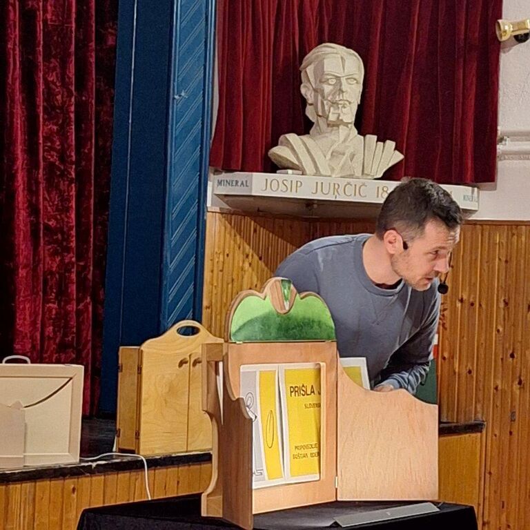 Nastopili so: Vanja Iva Kretič (Junaki v otroškem ljudskem izročilu), Pika Škerlj (Sonce in veter, Ezop), Enja Grabrijan (Lisica in volk, rezijanska ljudska), Violeta Anđelić (Zajček in repa, ruska ljudska), Breda in Darko Kočevar (Krava, Roald Dahl), Boštjan Oder (Prišla je miška, slovenska ljudska), Maruša Pušnik (Vžigalice, po Božu Kosu), Tatjana Grabrijan (Brivec, frizer, pediker, Saša Vegri). Za konec sta Vanja Iva Kretič in Boštjan Oder skupaj odigrala kamišibaj predstavo Dilema. Kdo ima prav?