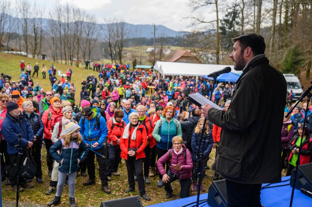 Na zaključni slovesnosti je pohodnike pričakal slavnostni govornik, priljubljeni župnik Martin Golob, ki je v nagovoru poudaril pomen Jurčičeve literarne zapuščine. Udeležence pohoda je v nagovoru pozval, naj kot Krjavelj v sebi najdejo pogum ter drznost in naj beseda o ljubezni vedno nagovori. »Naj bodo pohodniki upanja, naj presekajo mencavost in ponosno stopajo naprej«, je dodal Golob. Ob zaključku je obiskovalce na Jurčičevi domačiji še pozval, naj bodo ponosni Slovenci, naj berejo slovensko literaturo in se učijo lepih Jurčičevih vrednot. Na odru se mu je pridružil tudi domačin Lojze Grčman, ki je kot Josip Jurčič nekoč, danes urednik, novinar in avtor trenutno ene najbolj prodajanih knjig z naslovom »Na spletni prižnici - Misli in spodbude Martina Goloba«.