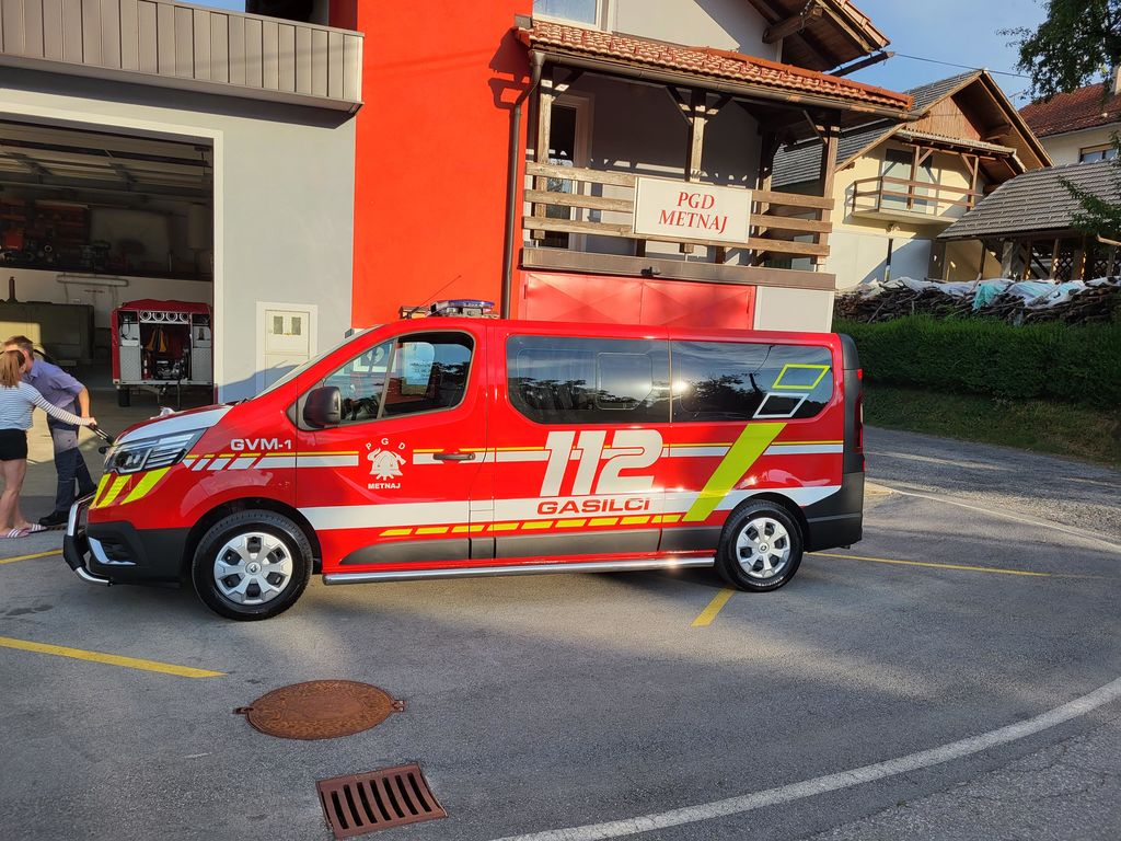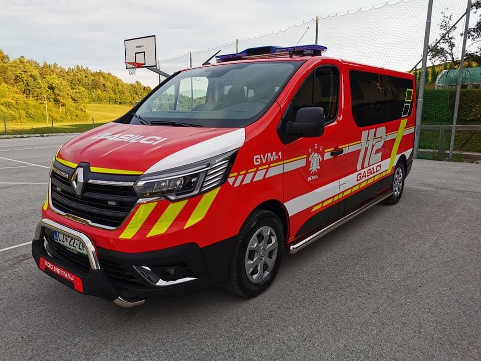 Popolno novega in v celoti izvedbeno zaključenega vozila pa so se nedavno razveselili tudi v Krajevni skupnosti Metnaj. Tamkajšnji gasilski dom PGD Metnaj je bogatejši za novo kombinirano Renault vozilo GVM-1, ki bo prav tako primeren za prevoz moštva in opreme.