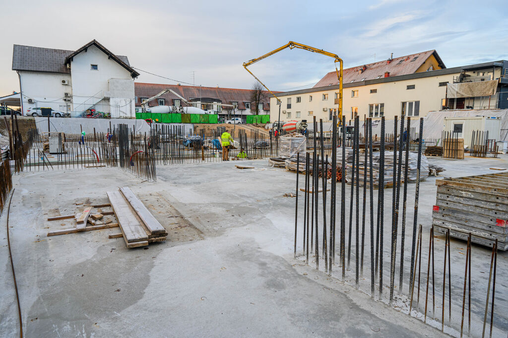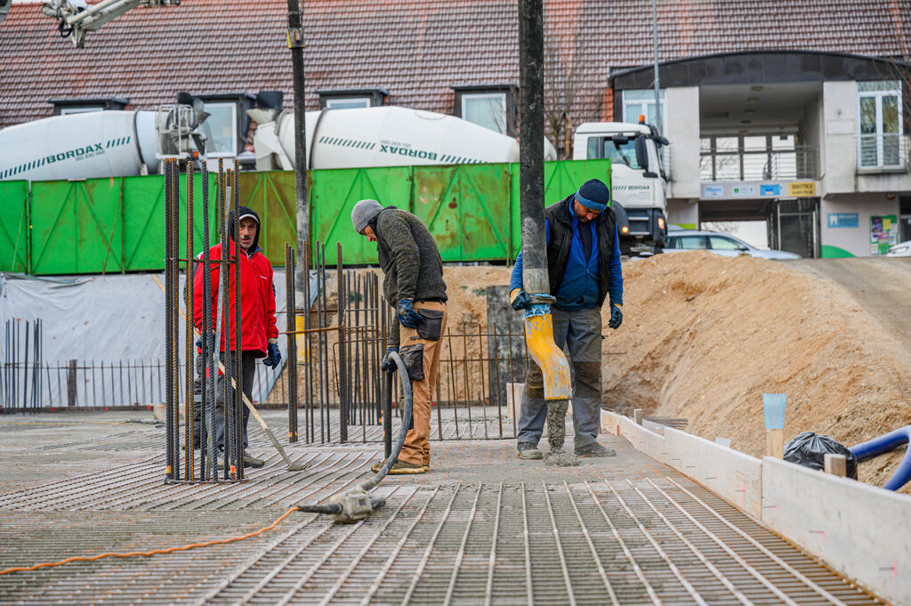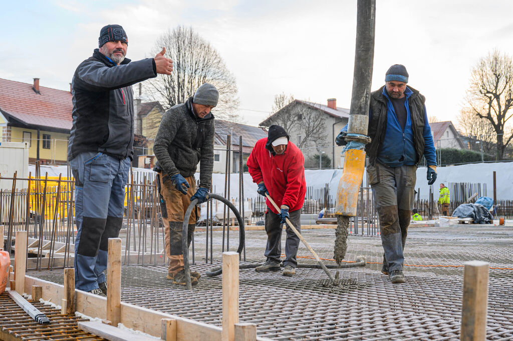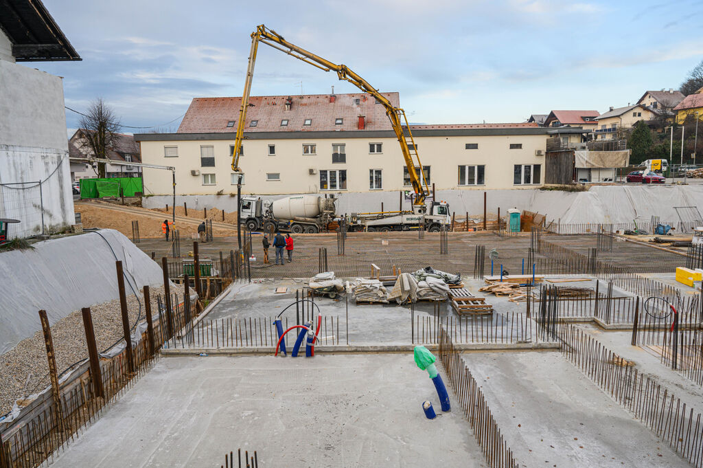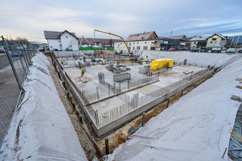 Zaradi specifično projektirane temeljne plošče betonaža le-te poteka v večih fazah. Do sedaj so bile izvedene tri faze betoniranja, ki skupno zajemajo površino okoli 2.200 m2, od celotne 2.400 m2. Dela se bodo nadaljevala tudi v decembru.