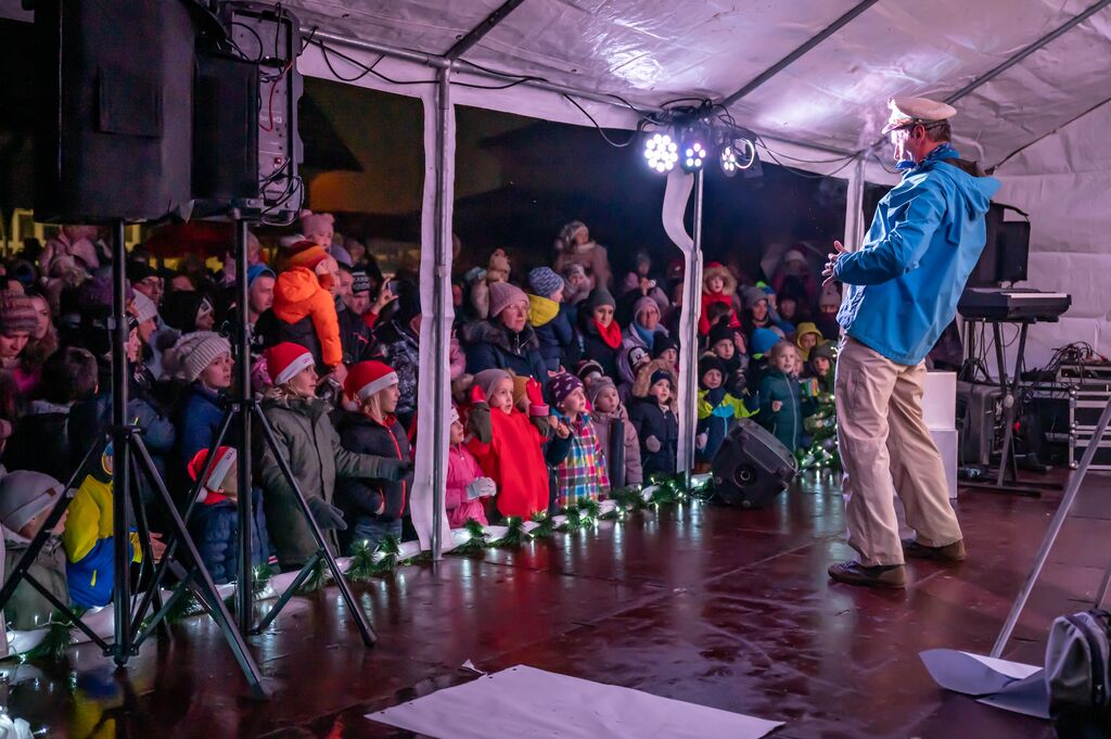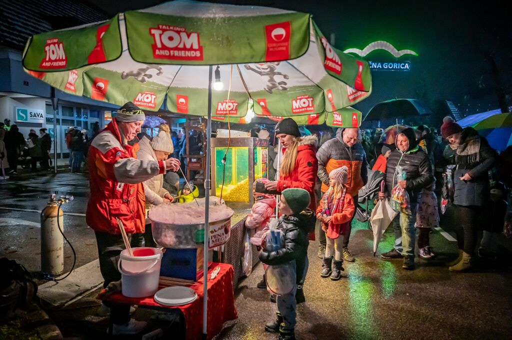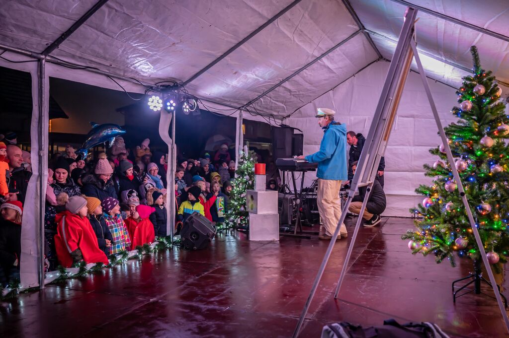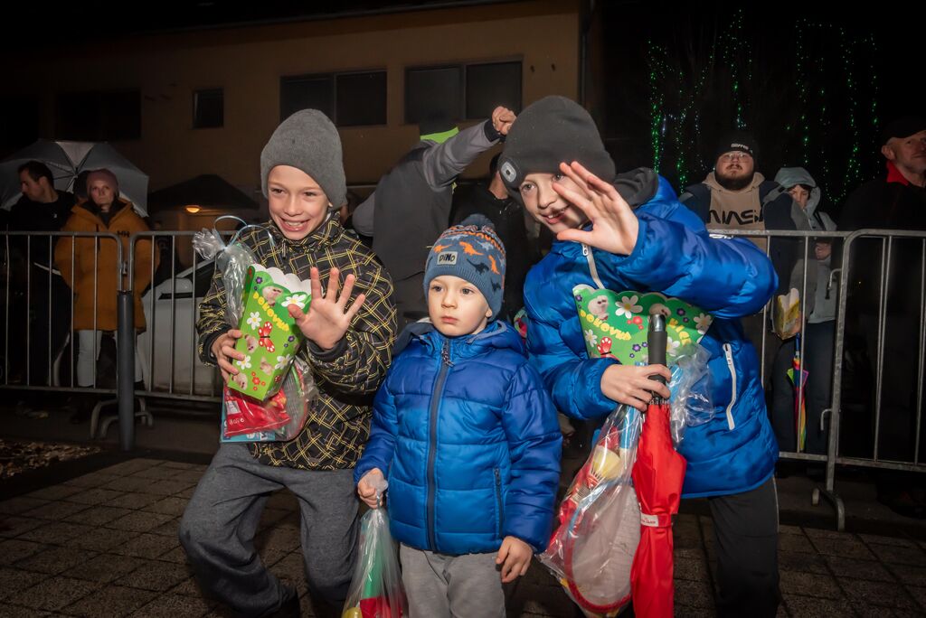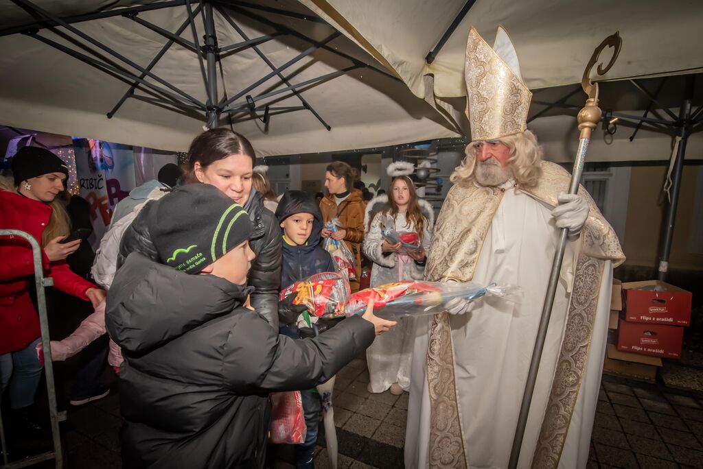 Še pred prižigom praznične razsvetljave je za nepozabno otroško zabavo na ploščadi pred občinsko stavbo poskrbel vsem dobro poznani Ribič Pepe. Okoli 700 otrok do sedmega leta starosti, ki so se zbrali v spremstvu staršev, dedkov in babic, je naposled s prihodom razveselil sveti Miklavž. Ta jih je skupaj z angelčki in parkeljčkom pozdravljal kar s prikolice enega izmed praznično okrašenih traktorjev Društva podeželske mladine Kalček. Po pozdravu je Miklavž vse otroke obdaril z bogatim darilom, v katerem so bili loparji za badminton, krede za ustvarjanje, vratni trak z občinsko podobo ter sladke dobrote.