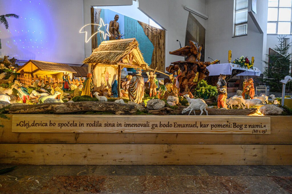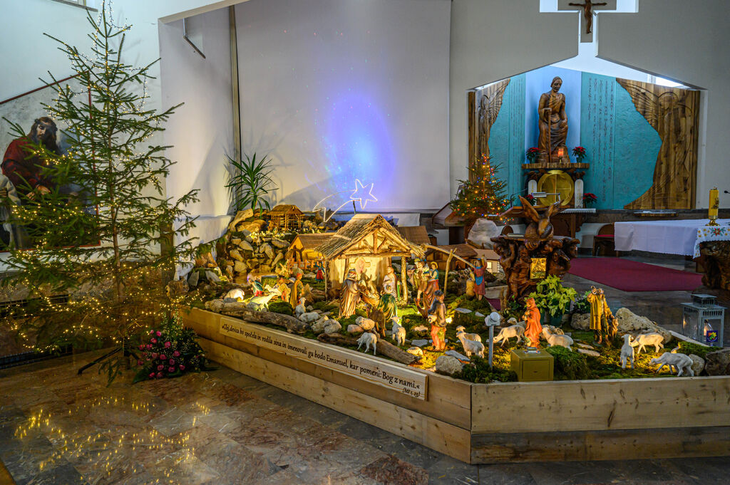 V župnijski cerkvi sv. Jožefa v Ivančni Gorici tudi letos stojijo tradicionalne velike jaslice, ki so klasične po obliki, a vsakič znova vsebinsko drugačne. Letošnja postavitev obiskovalca popelje v domačo pokrajino s kmečkimi hišami, gospodarskimi poslopji in hlevom z domačimi živalmi. To navidezno obilje prekriva megla, simbol negotovosti, odtujenosti in pomanjkanja pristnega veselja, ki se vse pogosteje naseljuje v naš vsakdan.
