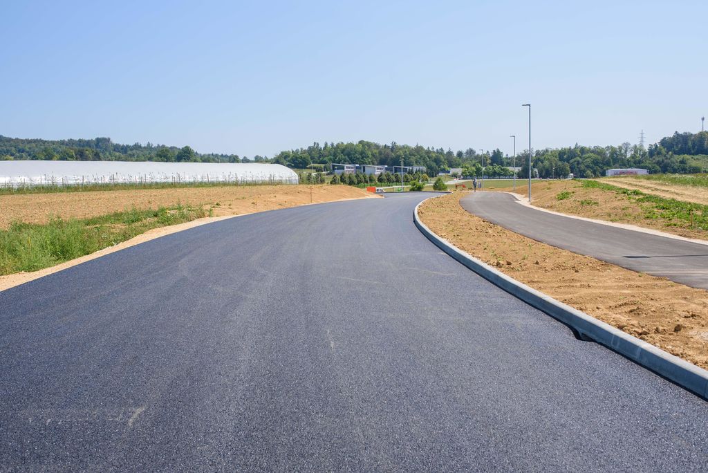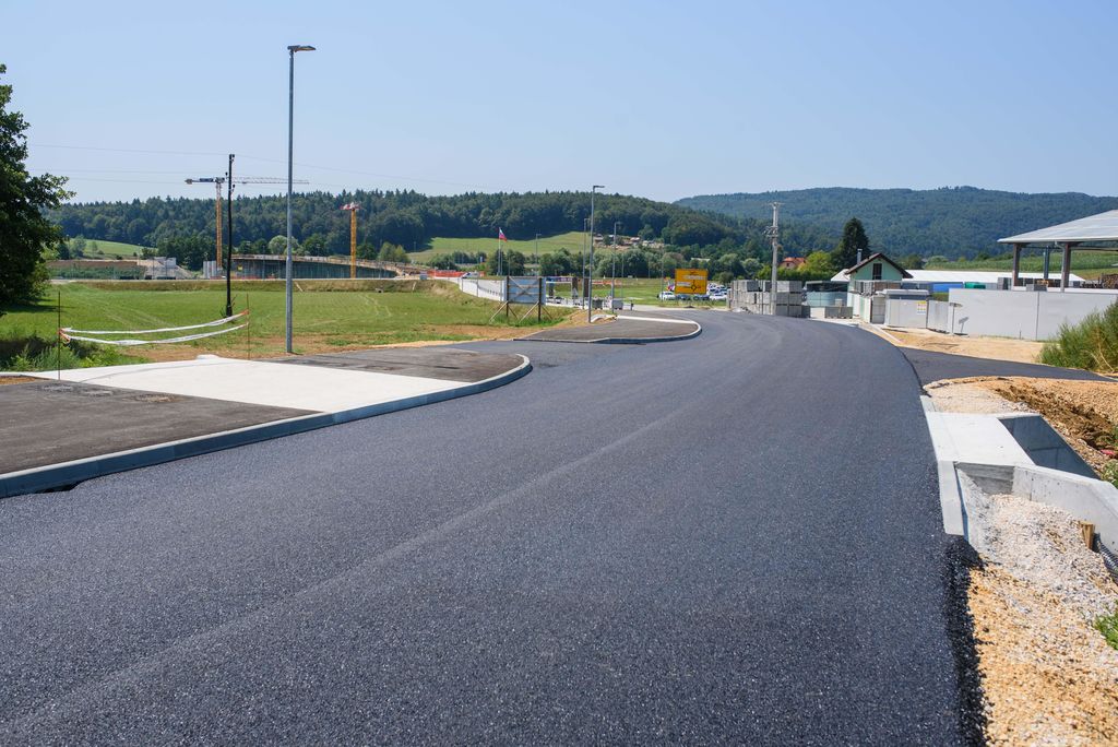 V preteklem tednu je bil asfaltiran tudi že dober kilometer ceste t. i. zahodne obvoznice od podjetja Akrapovič proti Marofu. V teku je tudi že namestitev varnostni ograj.