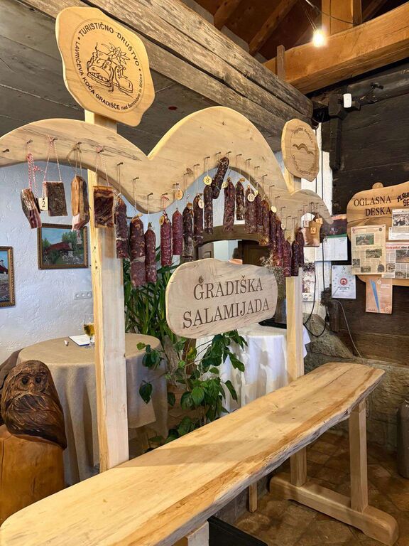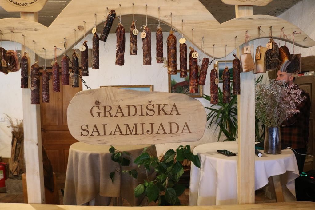 Konec aprila je na Lavričevi koči na Gradišču nad Šentvidom pri Stični potekala že 5. Gradiška salamijada, ki jo je uspešno organiziralo Turistično društvo Lavričeva koča Gradišče. Dogodek, ki postaja vse bolj priljubljen med ljubitelji domačih mesnin, je letos privabil kar 20 vzorcev salam, prvič pa so v ocenjevanje vključili tudi domače sušene slanine, katerih je bilo devet.