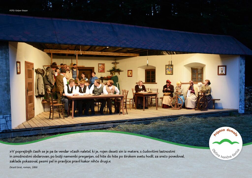 Druga pomembna obletnica nas popelje v leto 1866, ko je Jurčič napisal prvi slovenski roman – Deseti brat. Dogajanje je postavil prav na Muljavo in v njeno okolico, med lepote dolenjske pokrajine. V zgodbo je vtkal ljubezen, skrivnosti in družinsko dramo ter z idejo poroke iz ljubezni napovedal nove, sodobnejše družbene čase. Svojim literarnim junakom je, kot je dejal, dodal domišljijo – »kar je upanje in prihodnost«.