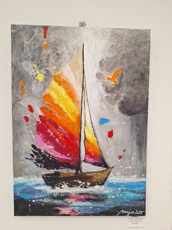 Zaradi službenih obveznosti in družine, ki je sledila temu obdobju, so bili čopiči v zasebnem življenju zares dolgo časa potisnjeni v kot. Sedaj, ko so moji otroci že samostojnejši, si med dopustom rada vzamem čas za slikanje, ki pa je precej drugačno od tistega iz moje mladosti. Danes se poslužujem predvsem tehnike MIXED MEDIA. To je likovna tehnika, kjer združujem več različnih materialov in izraznih sredstev. Razstavljene slike tako vsebujejo akrilne barve, flomastre, časopisni papir, fotografije, modelirno maso, lubje, lišaje, drevesne liste, različne strukturne paste, bleščice, odtise, šablone, perje in še in še. Takšna tehnika omogoča večplastnost in teksturo, daje občutek globine in dinamike, spodbuja svobodno, eksperimentalno ustvarjanje, motiv pogosto postane bolj čuten in abstrakten. Razstavljena dela so torej nekaj povsem unikatnega in neponovljivega.