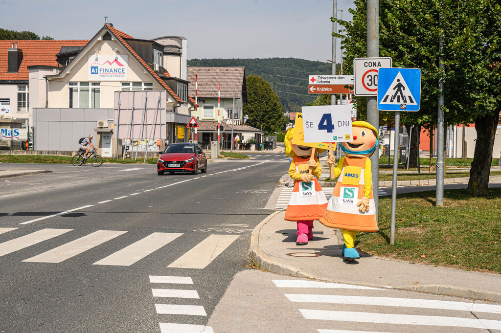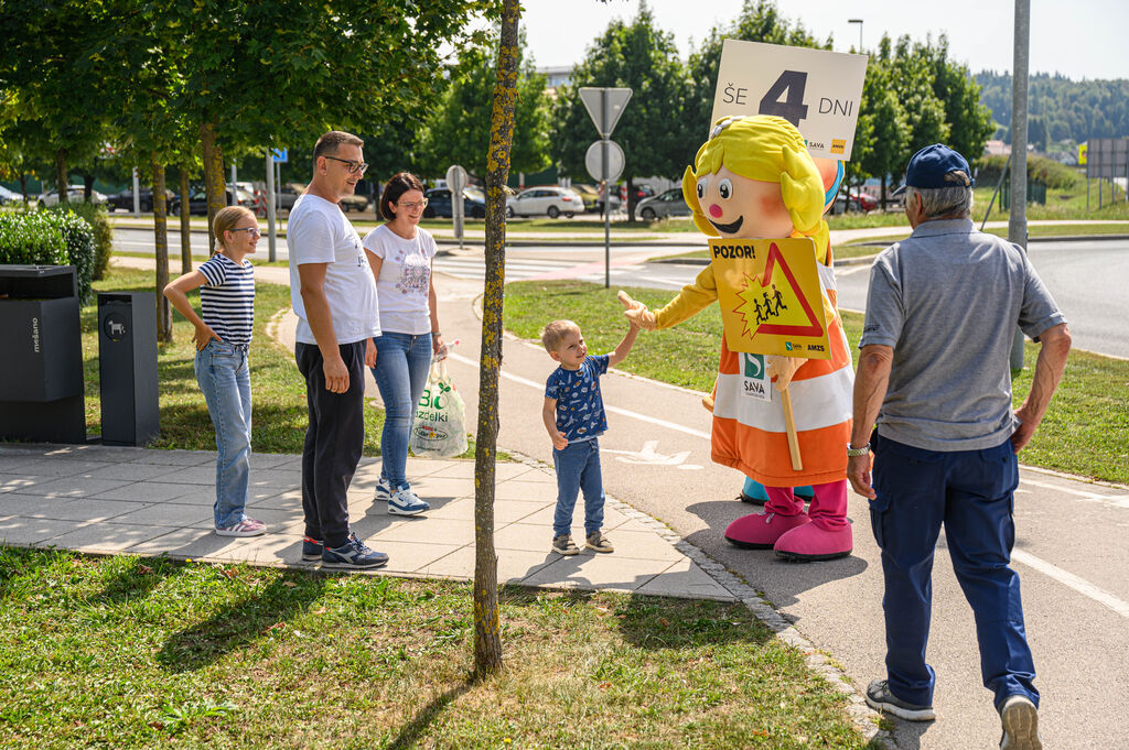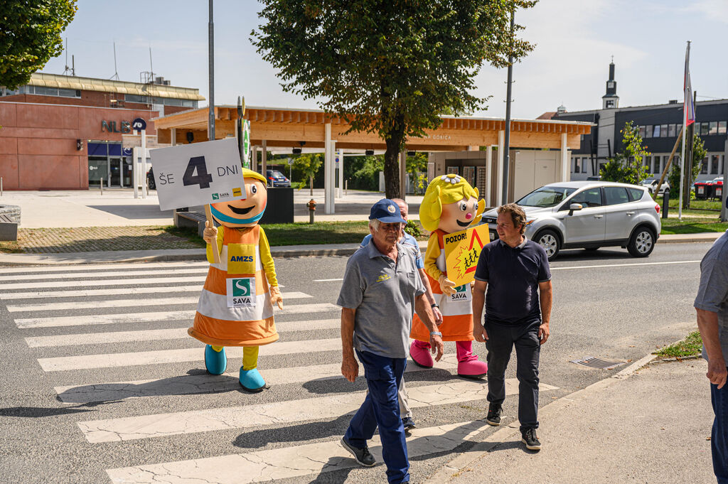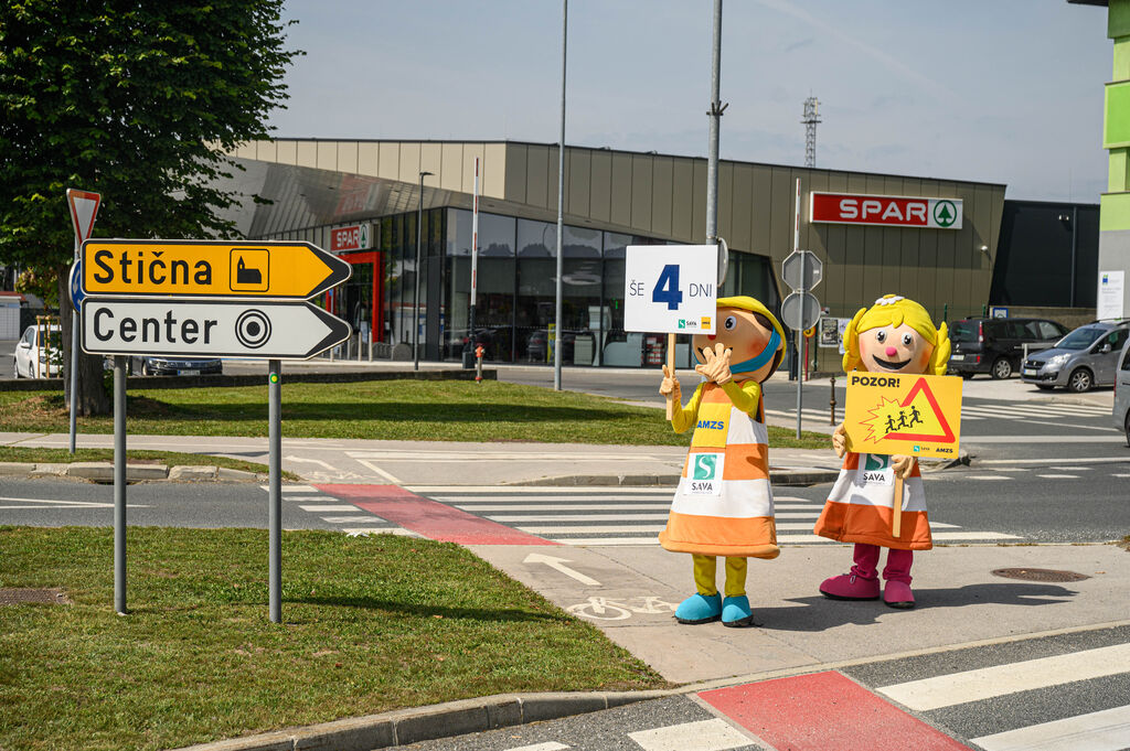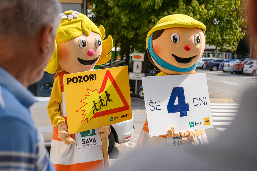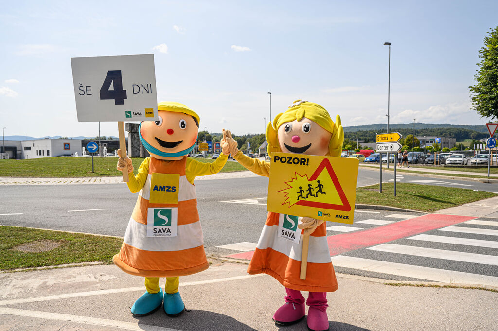 »Še 4 dni«, je pisalo na tabli, ki sta jo v četrtek, 28. avgusta 2025, v Ivančni Gorici nosili maskoti AMZS Anja in Marko ter z njo opozarjali voznike na previdnost ob začetku novega šolskega leta. Preventivno akcijo Še 365 dni! Avto-moto zveza Slovenije že deseto leto zapored izvaja v sodelovanju s Policijo, lokalnimi avto-moto društvi in klubi ter ob podpori Zavarovalnice Sava. Tudi letos se je akciji pridružila Občina Ivančna Gorica.