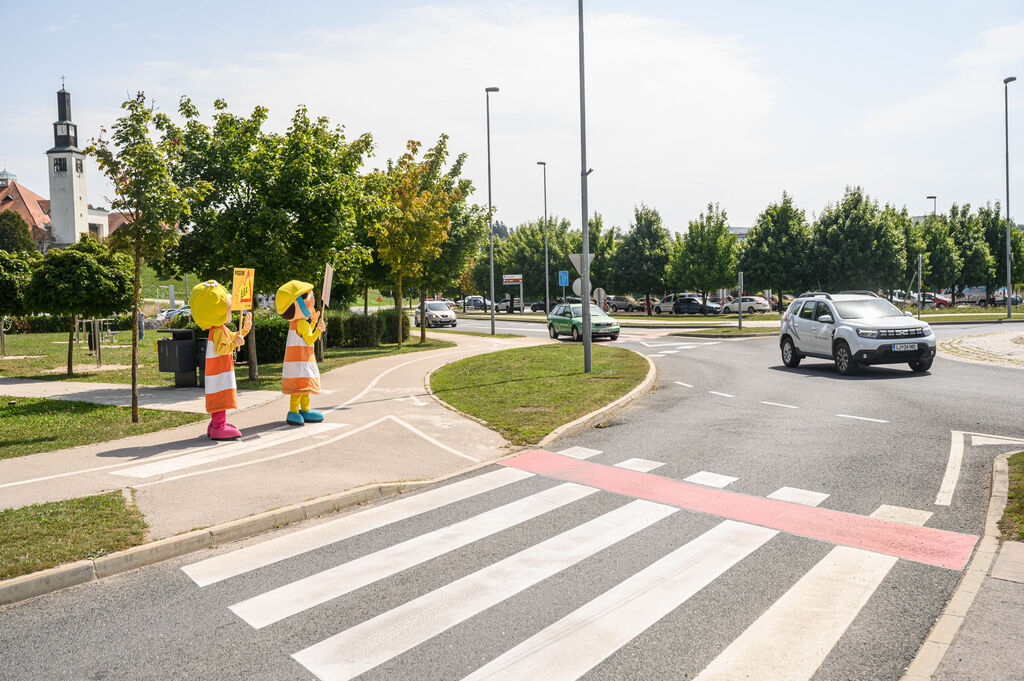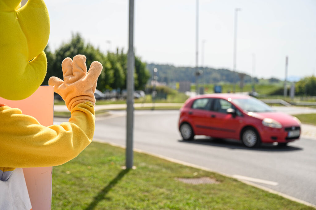 Maskoti AMZS so pred občinsko stavbo pozdravili župan Dušan Strnad, predsednik Sveta za preventivo in vzgojo v cestnem prometu občine Ivančna Gorica Marjan Balant, predsednik ZŠAM Ivančna Gorica Franc Bivic s člani ter predsednik AMD Šentvid pri Stični Matej Šteh. Prisotni so maskotama predstavili številne preventivne akcije, ki jih izvajajo ob začetku šolskega leta.