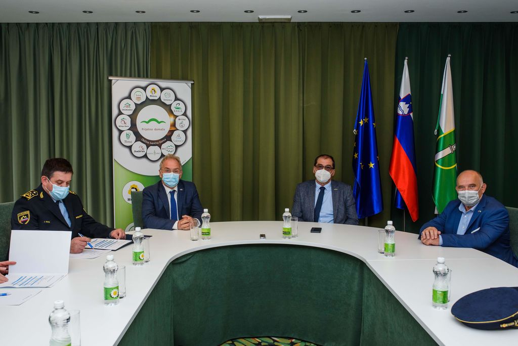 Župan Dušan Strnad se je s svojo ekipo v sejni sobi Občine Ivančna Gorica srečal z ministrom za notranje zadeve Alešem Hojsom ter skupaj z načelnikom Policijske postaje Grosuplje Bojanom Petkom in vodjo OKC Robertom Bajukom iskal rešitve za lokacijo in izgradnjo nove samostojne policijske postaje Ivančna Gorica.