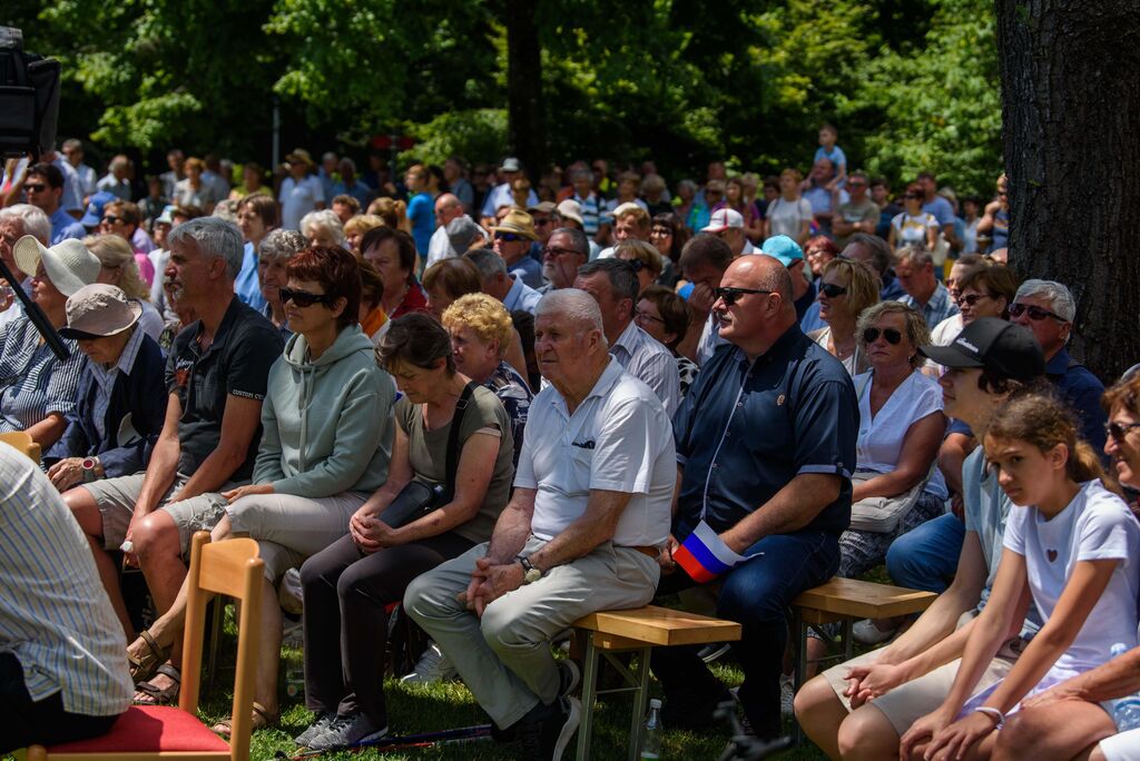 Sončna praznična nedelja je na osrednjo občinsko slovesnost v počastitev dneva državnosti na Polževo privabilo množice ljudi. Praznovanje se je sicer začelo ob 11. uri z mašo domovino v cerkvici sv. Duha, ki jo je ob somaševanju duhovnika župnije Krka Dejana Pavlina in zlatomašnika prelata dr. Janeza Grila daroval zaslužni profesor dr. Janez Juhant.