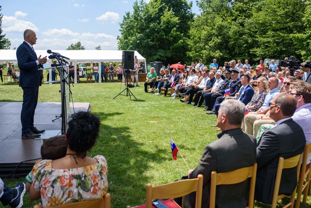 Zbrane prisotne je po maši za domovino nagovoril poslanec Državnega zbora Republike Slovenije, Janez Janša, ki je povedal, da je država za narod to, kar je za družino hiša. Domovina pa je za narod to, kar ja za družino dom. »Težko je imeti dom, če nimaš hiše ali stanovanja, težko pa je imeti domovino, če nimaš lastne države. Naši predniki so skozi obdobja to preizkusili na svoji koži. Domovina tudi ni nekaj kar nastane čez noč. Država pa lahko skoraj nastane čez noč. In to se je zgodilo pred 32. leti« je med drugim povedal Janša in zaključil: »Bog živi Slovenijo in vse, ki imamo Slovenijo radi«.