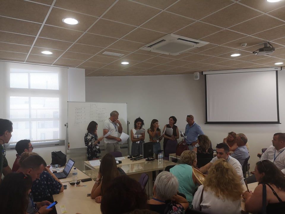 Naslednji dan so se že pričele delavnice in predstavitve pod skupnim naslovom »Znanje, ne skepticizem«. Naši občanki sta pripravili dve predstavitvi, projekcije in razlage o stanju pri nas. Sodelovali sta tudi v skupinah, kjer so reševali test prepoznavanja lažnih novic, v skupini pod našim vodstvom je bil rešen 100% pravilno. KNOTS je projekt mest iz trinajstih evropskih držav, med katerimi iz Slovenije sodeluje Občina Ivančna Gorica. Mednarodne delavnice so že potekale v različnih evropskih mestih; v Italiji, na Portugalskem, v Sloveniji in sedaj v Španiji. Naslednja bo na Cipru.