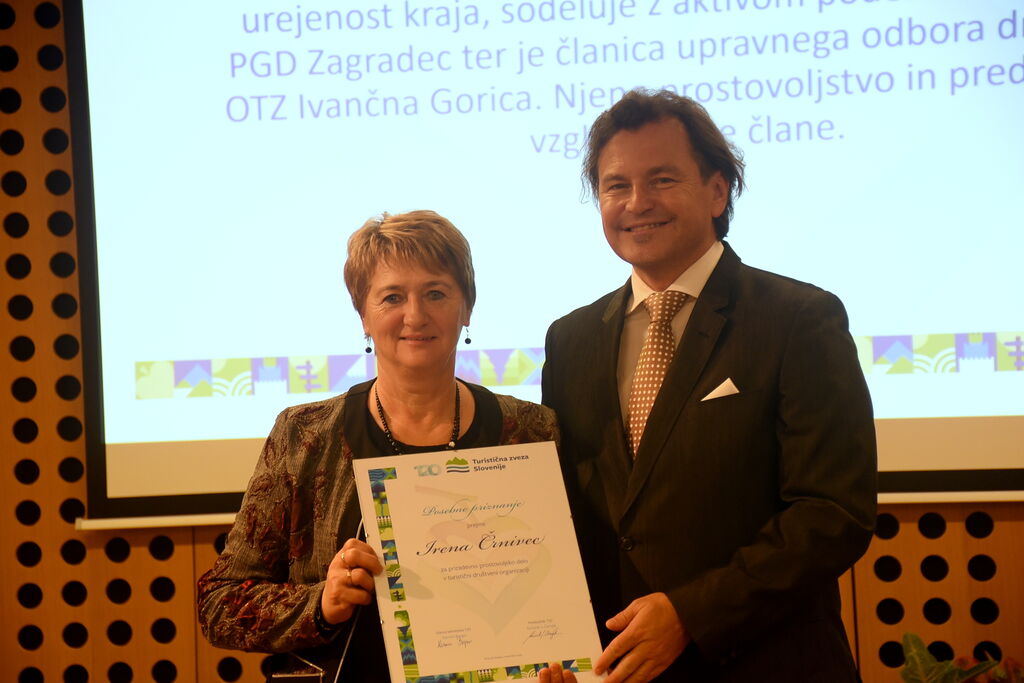 Ob okroglem jubileju je Turistična zveza Slovenije nagradila kar 73 turističnih prostovoljcev, med njimi je priznanje prejelo tudi pet prostovoljcev – turističnih delavcev iz občine Ivančna Gorica. Priznanje za prostovoljno delo na področju turizma so prejeli: Stanislav Kralj, predsednik Občinske turistične zveze Ivančna Gorica, France Perko, TD Ambrus, Ema Grünbacher, TD Ivančna Gorica, Milena Stojanović, TD Višnja Gora in Irena Črnivec, TD Zagradec.