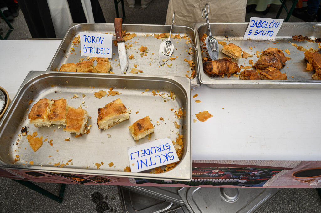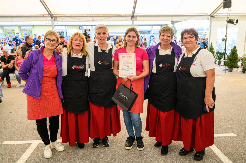 V kategoriji tradicionalnih jabolčnih štrudljev je zmago odnesla Joži Fajdiga iz Temenice, pred Lidijo Zupančič na drugem in Darjo Mrvar na tretjem mestu.