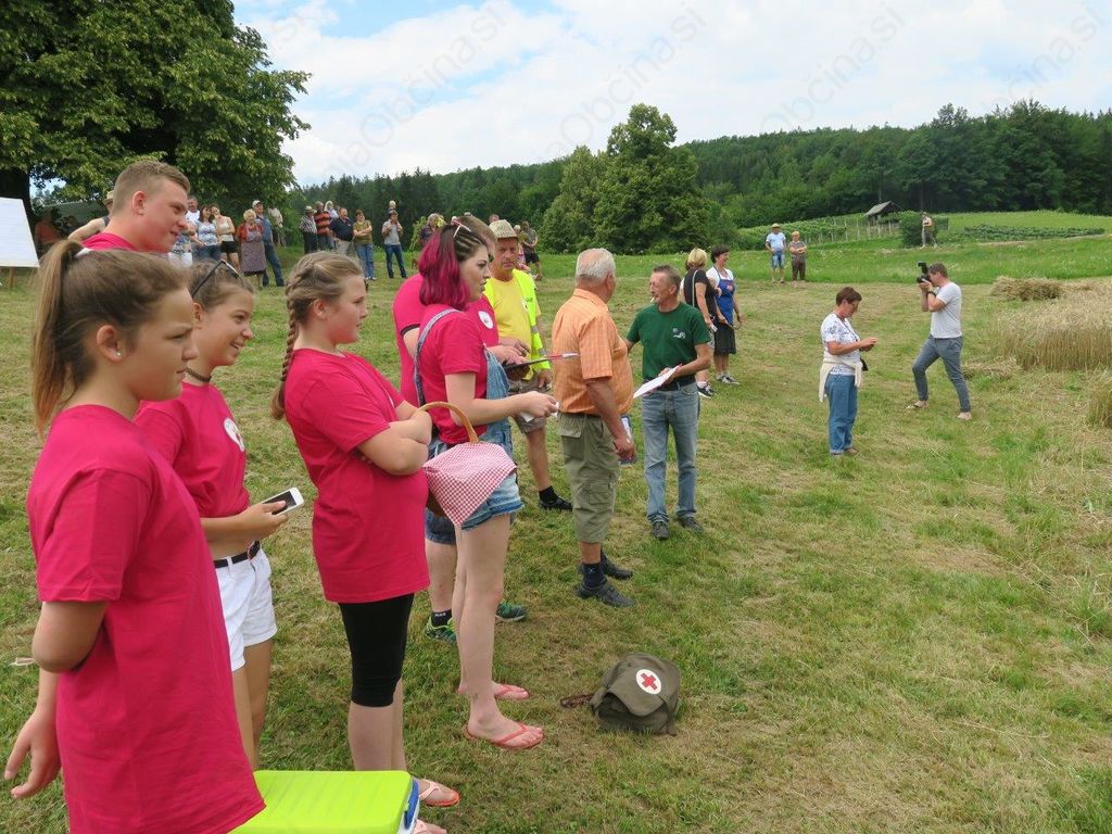 Na Blatnikovi njivi pod vasjo Kitni Vrh so se najprej pomerile žanjice. Precej težav jim je povzročala suho žito, ki se je drobilo pod spretnimi prsti obeh spolov. Med žanjicami je prvo mesto osvojila Marinka Žakelj iz Žužemberka, drugo domačinka Anica Blatnik in tretje Majda Murn iz Korit. Da ročno žetev bolje obvladajo kot delo s kombajni pa so dokazali s prvim mestom Boštjan Štrus iz Roženberka, Gašper Marinček iz Gabrovke pri Zagradcu, ki je dobil priznanje tudi za najmlajšega žanjca in Štefan Ozimek iz vasi Replje.