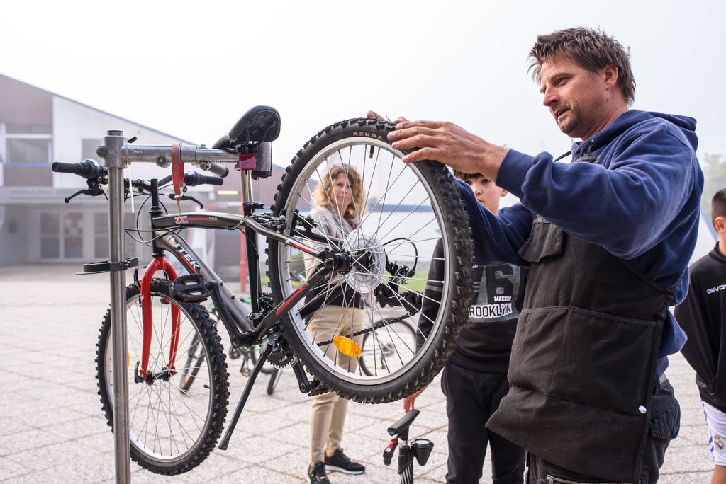 Sredino dogajanje je spremljala tudi popravljalnica koles pri amfiteatru med OŠ Stična in Srednjo šolo Josipa Jurčiča Ivančna Gorica. Prisotna serviserja sta učencem nudila osnovno servisiranje koles in delila pomembne informacije o varnosti kolesarjev v prometu. V sklopu popravljalnice so na kolesih pregledali vijake, pritisk v gumah, nastavitve menjalnikov, zavor in verig.