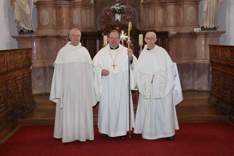 Opat Maksimiljan File v družbi nekdanjih stiških opatov Janeza Novaka (levo) in dr. Antona Nadraha (desno).