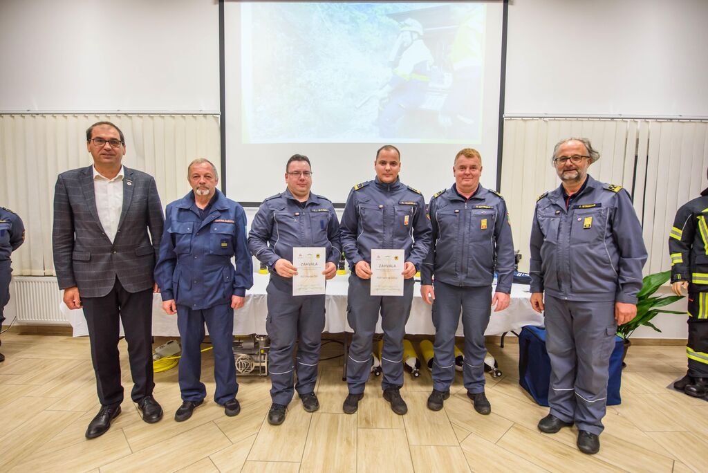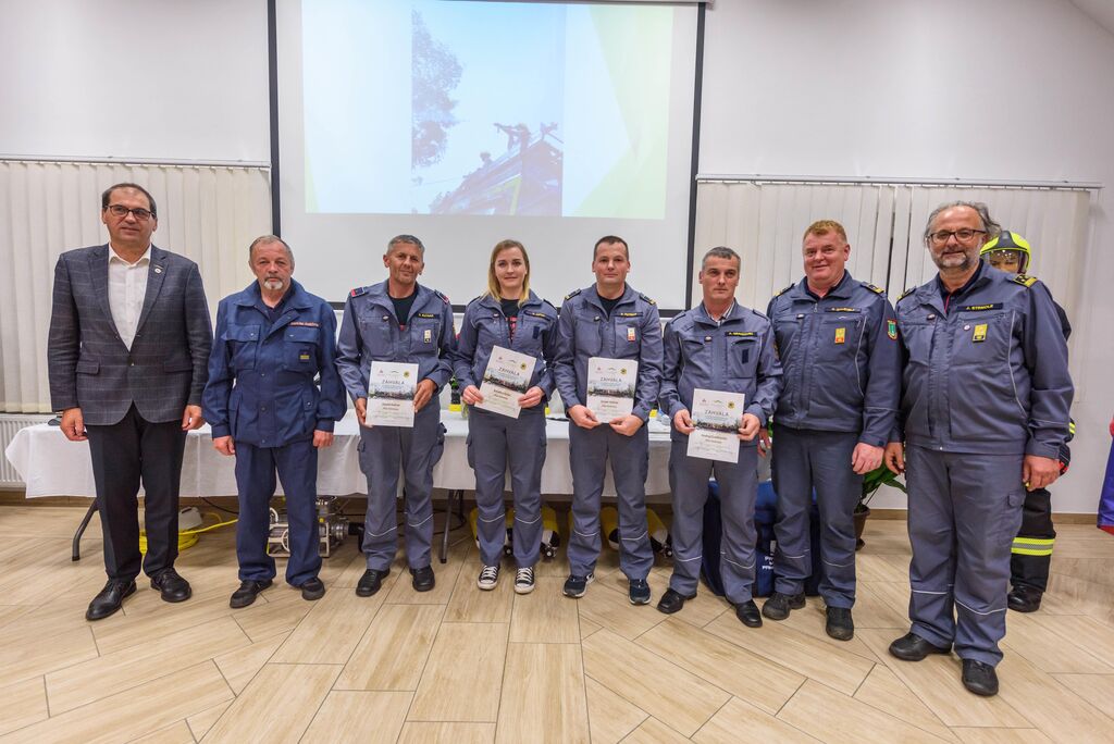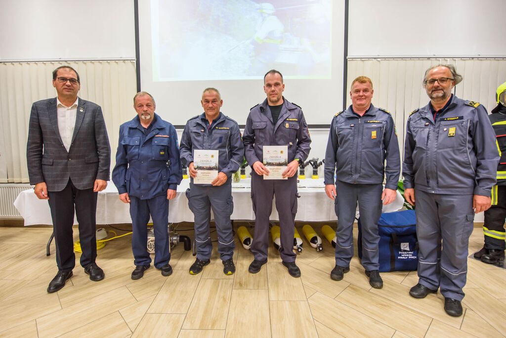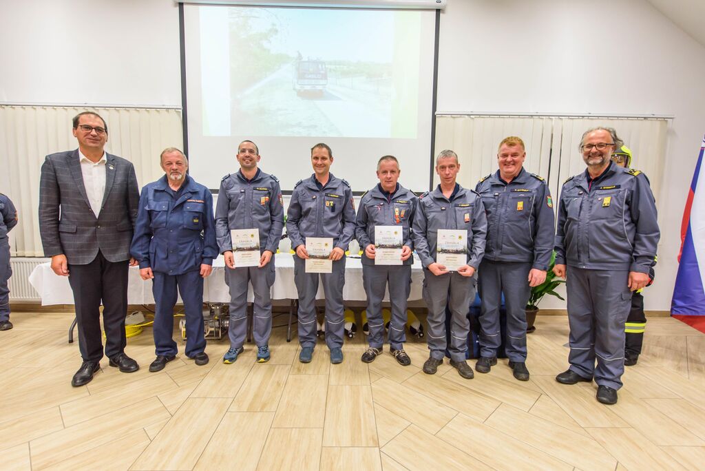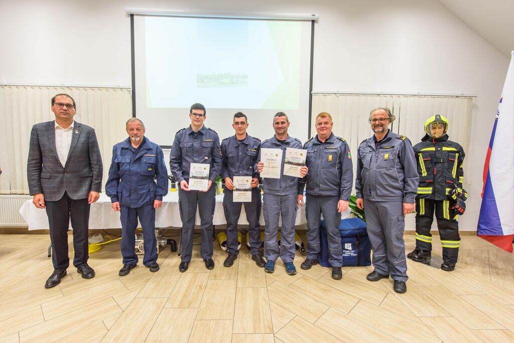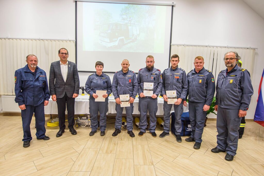 Po nagovorih je sledila izročitev zahval gasilcem za posredovanje na Krasu, podelili pa so še priznanja in čine gasilcem, ki so opravili tečaj za gasilskega častnika, operaterja dronov na intervencijah in tečaj za mentorja mladine. Predstavljena je bila tudi namenska gasilska oprema, ki je bila v letošnjem letu razdeljena društvom po načrtu gasilske zveze, in sicer: 16 jeklenk za IDA (Izolirni dihalni aparat), 2 muljni črpalki za umazano vodo, 17 turbo ročnikov, 17 priročnih termo kamer za odkrivanje žarišča požara, nabavljena pa sta bila tudi dva svetlobna balona za namen razsvetljave pri nočnih intervencijah.
