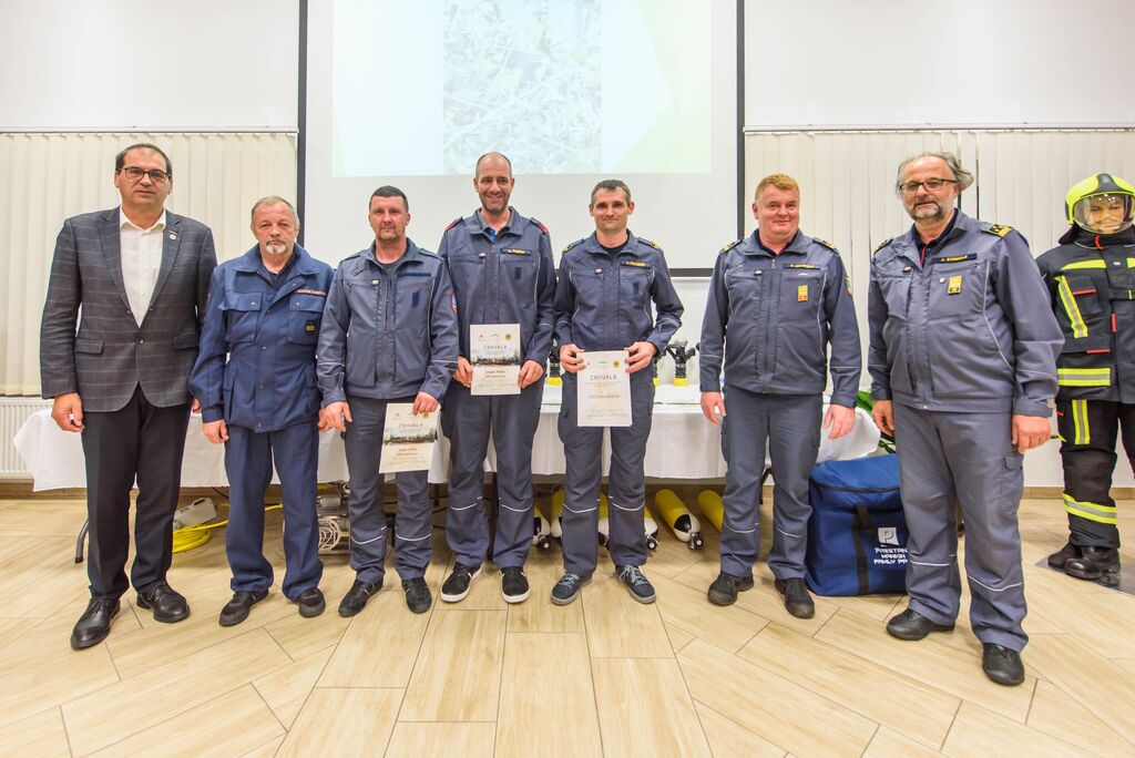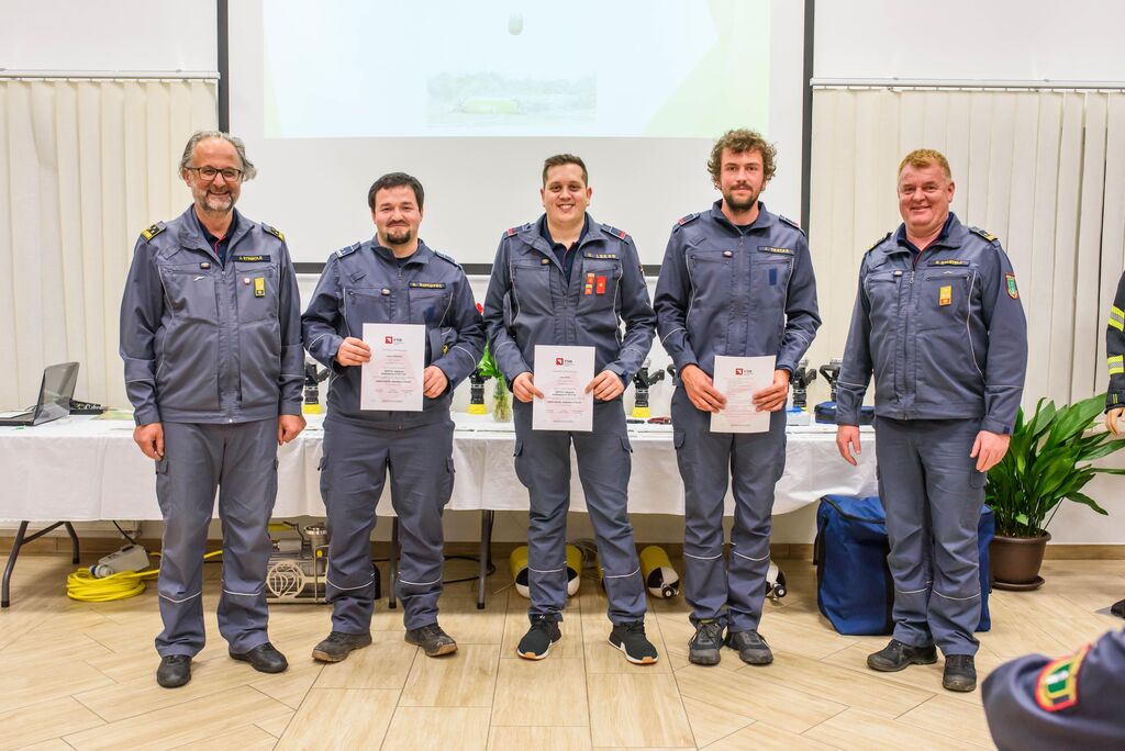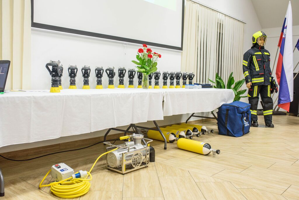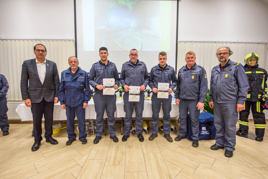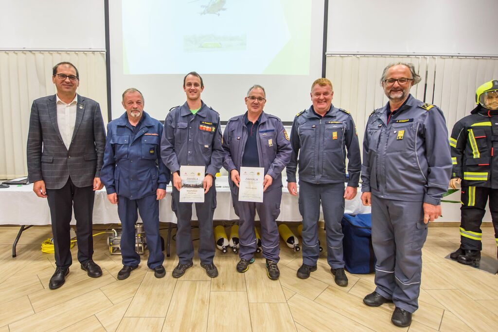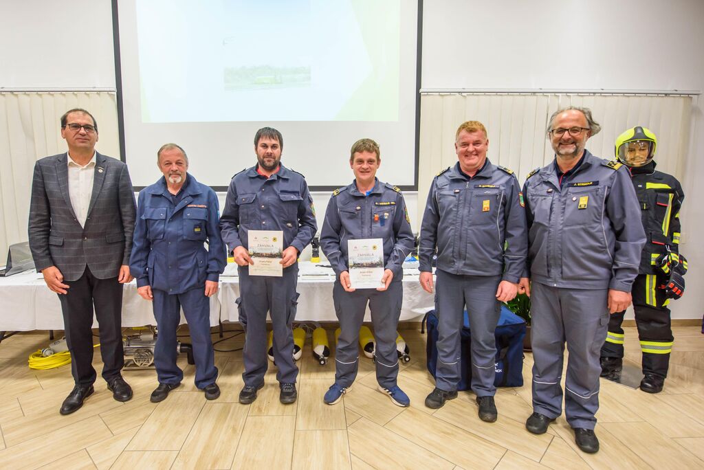 Po nagovorih je sledila izročitev zahval gasilcem za posredovanje na Krasu, podelili pa so še priznanja in čine gasilcem, ki so opravili tečaj za gasilskega častnika, operaterja dronov na intervencijah in tečaj za mentorja mladine. Predstavljena je bila tudi namenska gasilska oprema, ki je bila v letošnjem letu razdeljena društvom po načrtu gasilske zveze, in sicer: 16 jeklenk za IDA (Izolirni dihalni aparat), 2 muljni črpalki za umazano vodo, 17 turbo ročnikov, 17 priročnih termo kamer za odkrivanje žarišča požara, nabavljena pa sta bila tudi dva svetlobna balona za namen razsvetljave pri nočnih intervencijah.