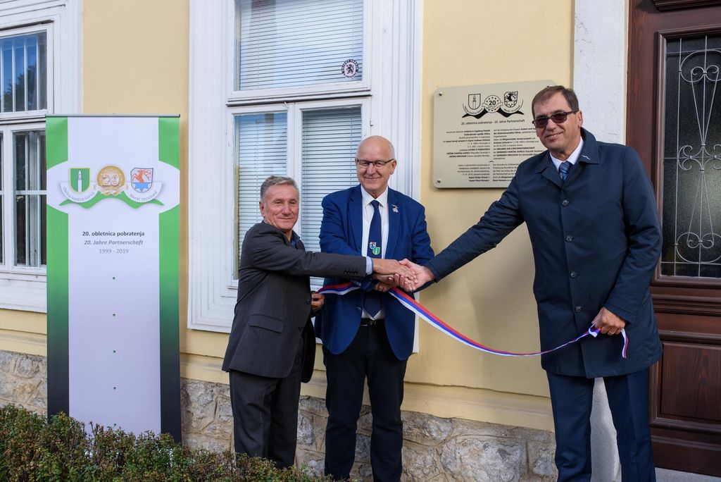 Praznovanje se je sklenilo v nedeljo dopoldan z odkritjem spominske table na pročelju občinske stavbe. Obeležje v spomin na praznovanje 20. letnice pobratenja sta slovesno odkrila župana obeh občin Dušan Strnad in Klaus Homan ter nekdanji župan Jernej Lampret. V nadaljevanju sta župana z zahvalnimi besedami uradno sklenila praznovanje v naši občini in poglede že usmerila k ponovnemu snidenju in praznovanju te obletnice v nemški občini, ki bo potekalo maja naslednje leto. Župan Strnad je gostom s stiskom rok zaželel še varen povratek v domovino.