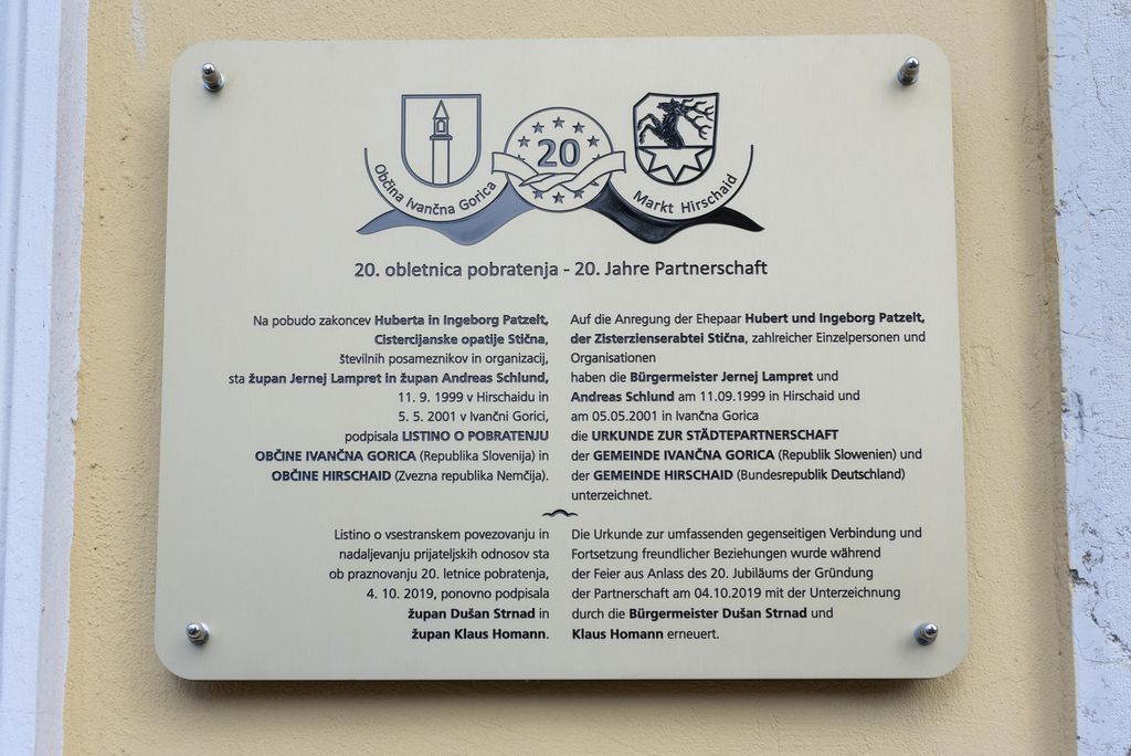 Tridnevno praznovanje 20 letnice pobratenja med občinama Ivančna Gorica in Hirschaid se je zaključilo. Poleg slovesne petkove prireditve, ki je potekala v športni dvorani OŠ Stična, z obnovitvijo zaveze o nadaljnjem medsebojnem sodelovanju, se je praznovanje nadaljevalo tudi v soboto in nedeljo. V soboto, 5. oktobra 2019, ob 9. uri, je na stiškem samostanskem dvorišču potekalo odprtje obnovljene fontane oziroma, kot ga je poimenoval