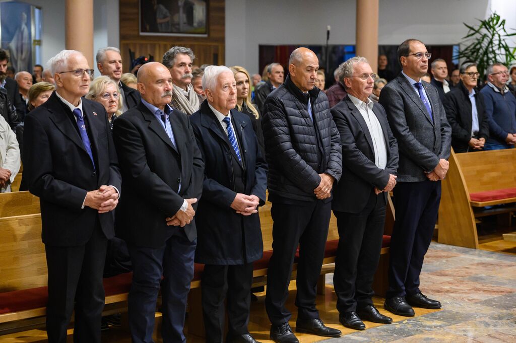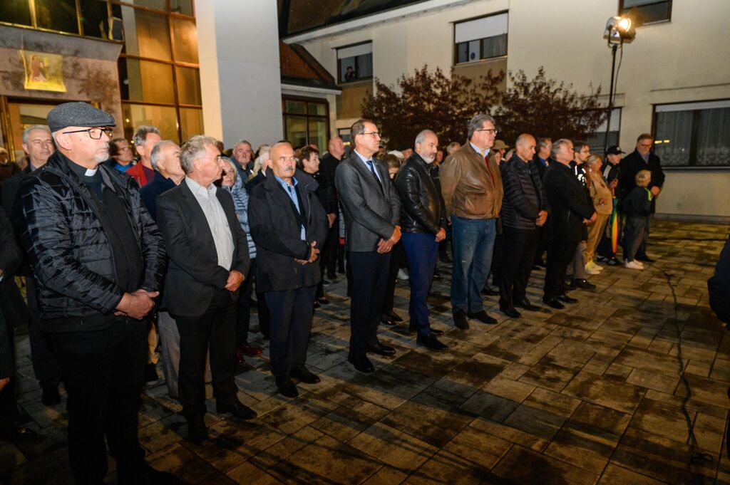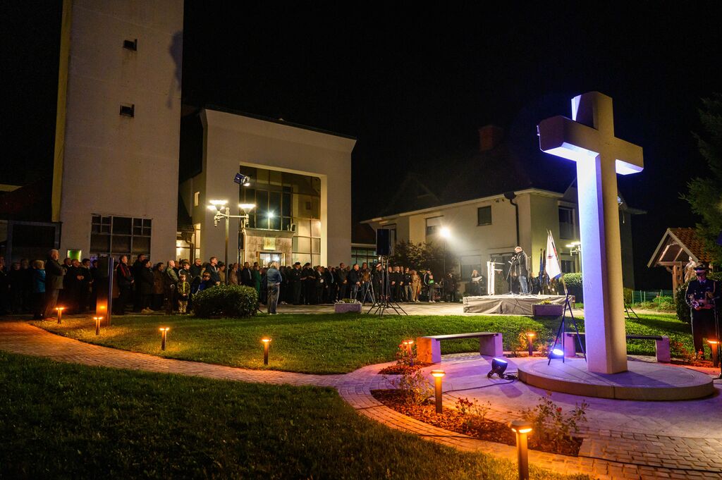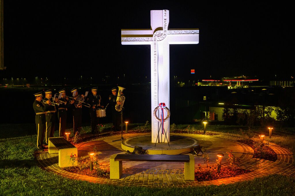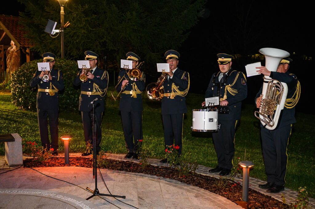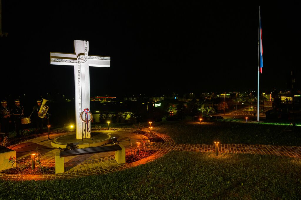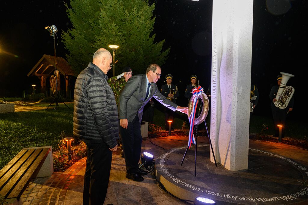 Ob zaključku slovesnosti sta govornika položila tudi venec časti pred obeležjem v spomin na prvo mašo za slovenske vojake.