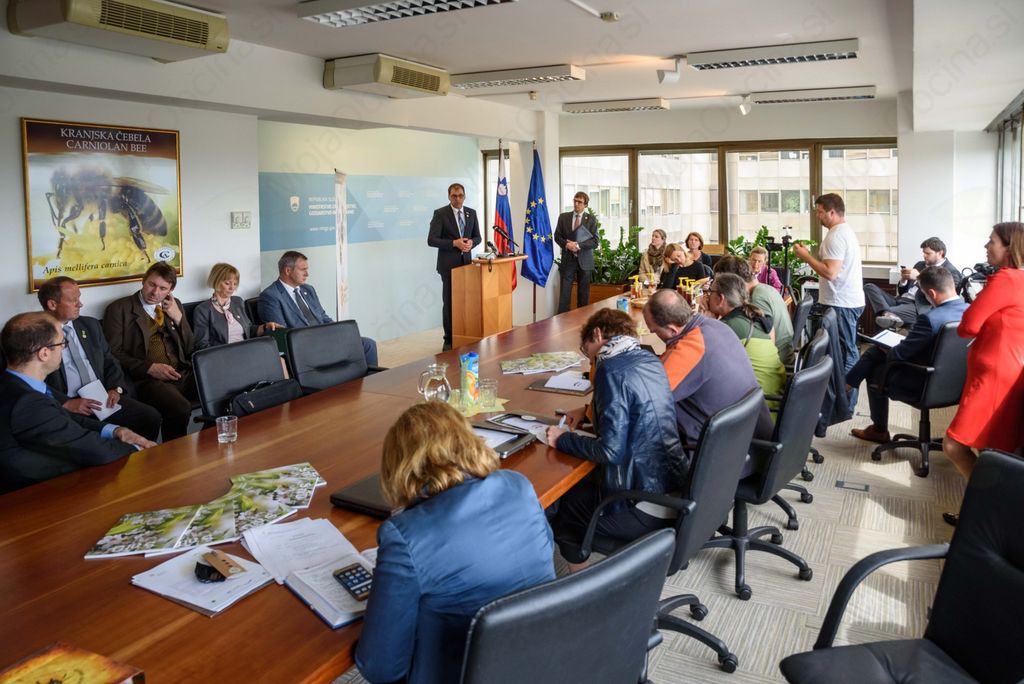 Župan Dušan Strnad se je v torek, 15. maja 2018, udeležil novinarske konference Ministrstva za kmetijstvo, gozdarstvo in prehrano v zvezi s pripravami na prvo obeležitev svetovnega dne čebel.