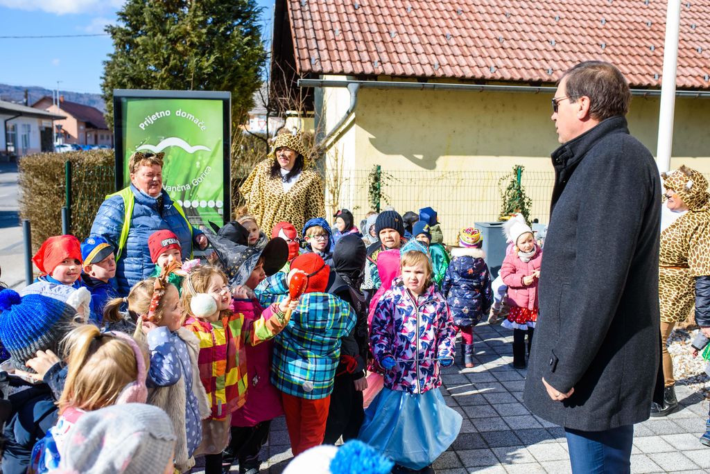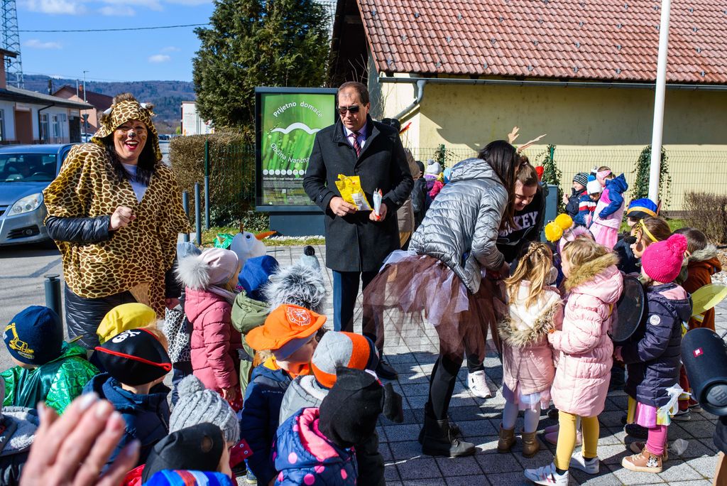 Maškare iz enot Vrtca Ivančna Gorica, prve triade Osnovne šole Stična, Varstveno delovnega centra Želva Ivančna Gorica so v Ivančno Gorico prinesle obilo smeha in dobre volje. Kot pa so povedale so zimo že pregnale, saj v Ivančni Gorici že diši po pomladi. Župan je z maškarami na kratko pokramljal ter jih obdaril s sladkimi dobrotami.