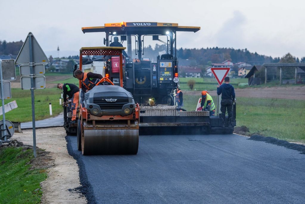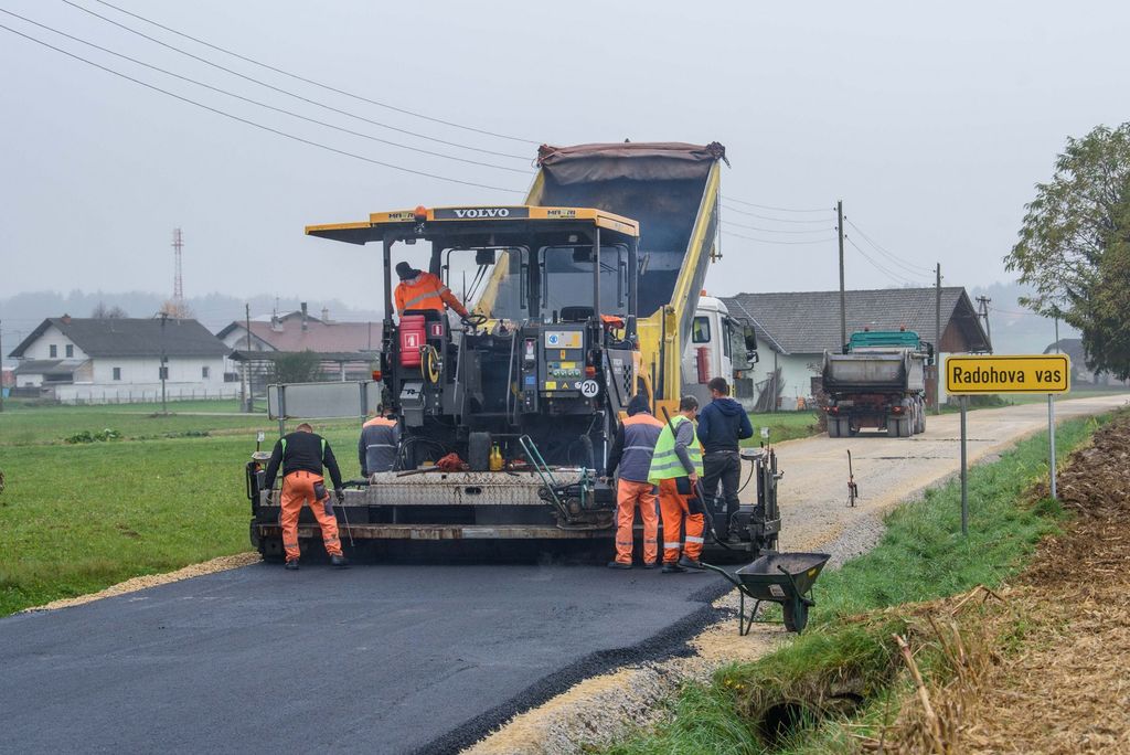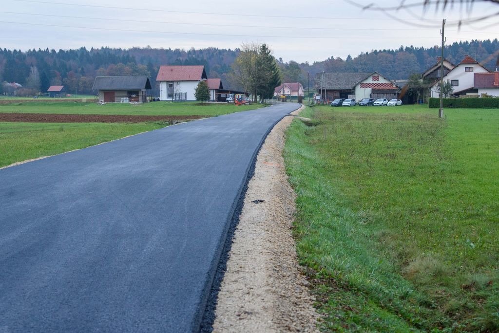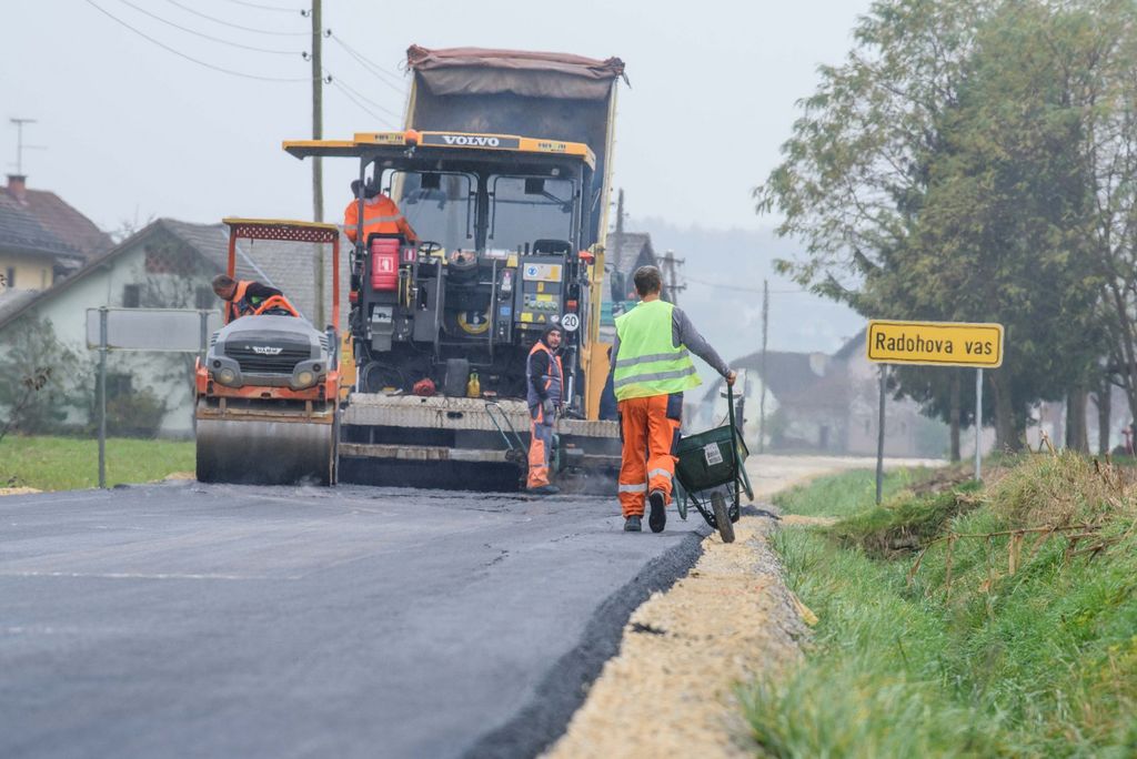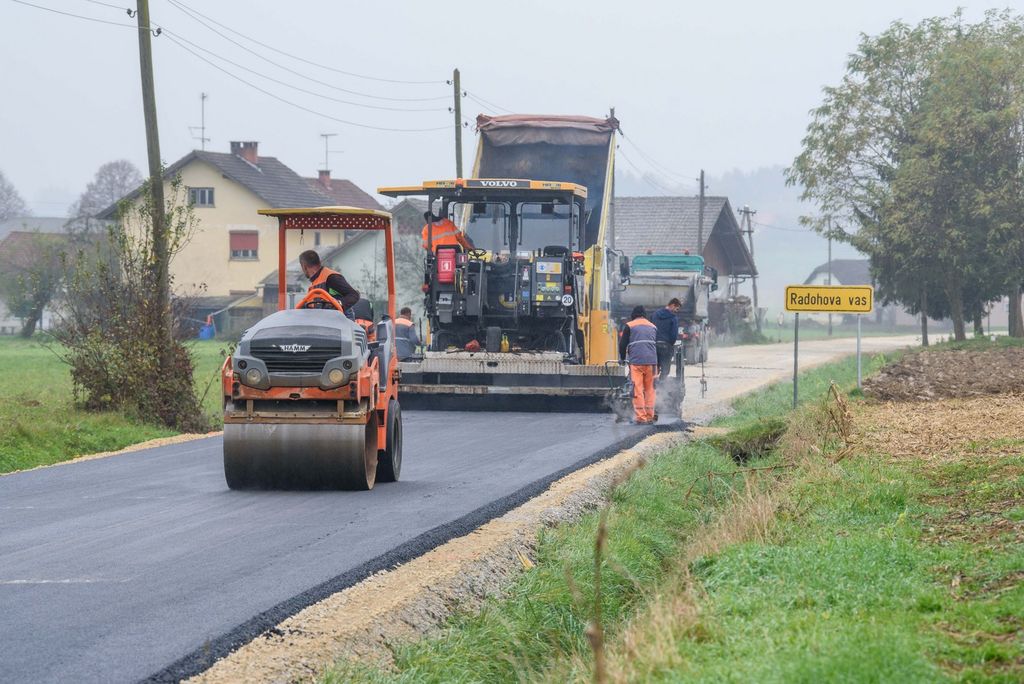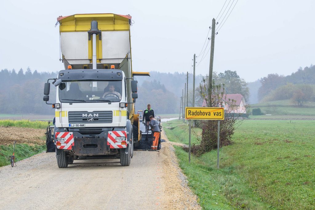 Po odstranitvi dotrajanega asfalta, utrditvi in nanosu zgornje plasti tampona je včeraj izvajalsko podjetje izvedlo še asfaltiranje ceste. Nov prenovljen odsek, ki iz Radohove vasi najprej pripelje do Brega pri Temenici in nato v sosednjo občino Trebnje, bo v prihodnjih dneh deležen še ureditve obcestnih bankin in zarisa talnih označb.