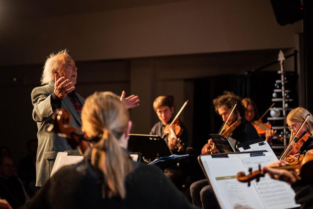 Godalni orkester je slavnostni koncert zaključil s skladbo Beli božič. Ob tej izvedbi je dirigentsko palico iz rok Polone Udovič prevzel slavnostni gost Edvard Adamič, upokojeni učitelj violončela na Glasbeni šoli Grosuplje, ki je skladbo tudi priredil.