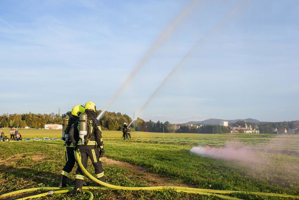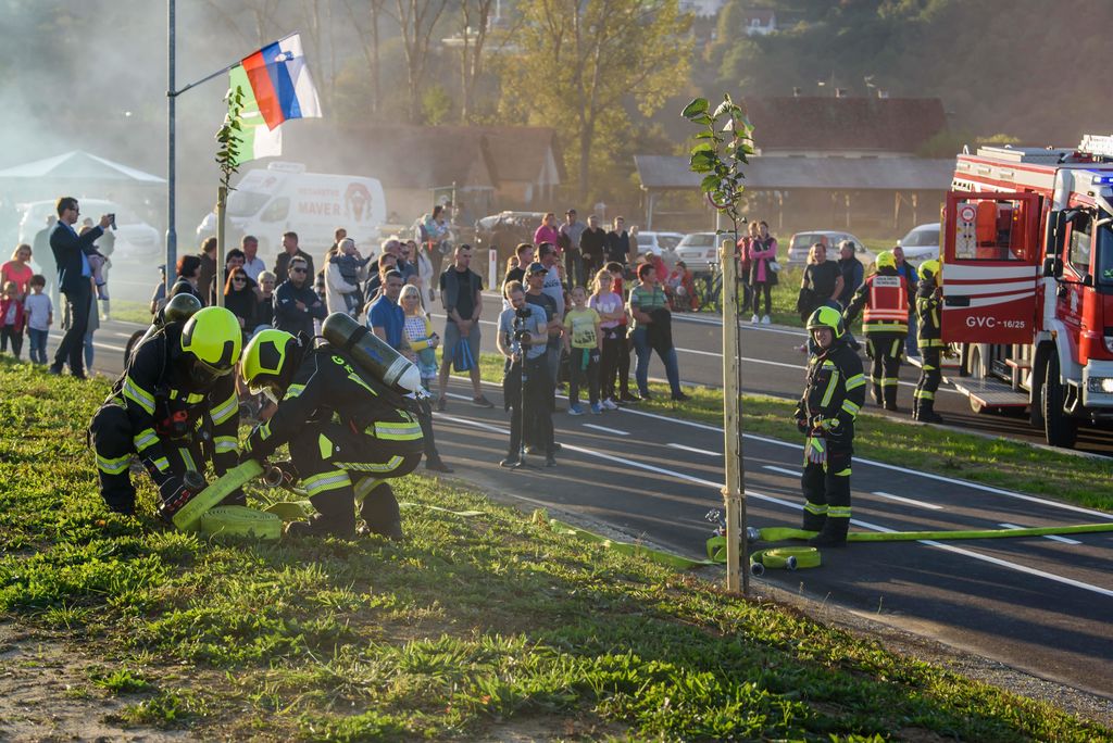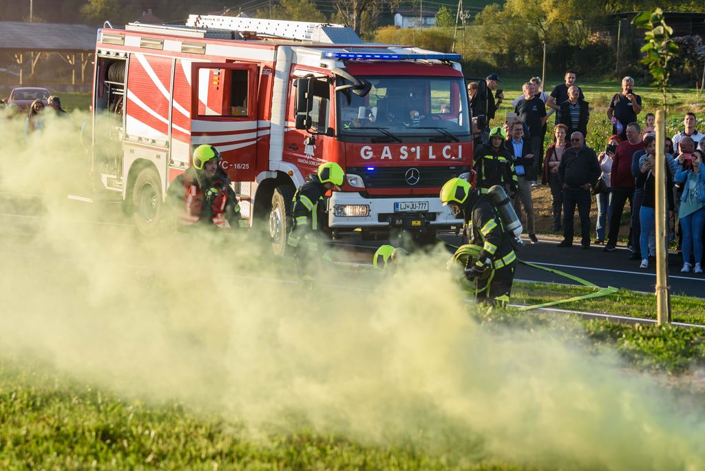 Po nagovoru župana je sledil prikaz gašenja požara v naravi, ki so ga izvedli člani prostovoljnih gasilskih društev iz Stične in Ivančne Gorice. V znak prijateljstva so na simboličen način intervencijo zaključili s prijateljskim vodnim slavolokom.