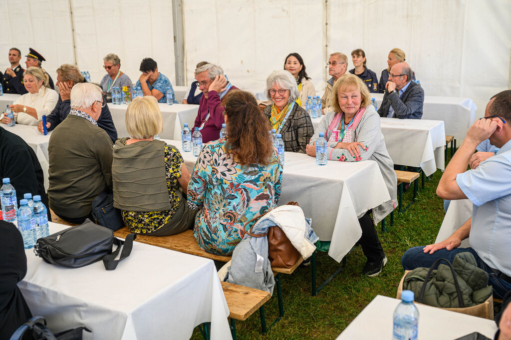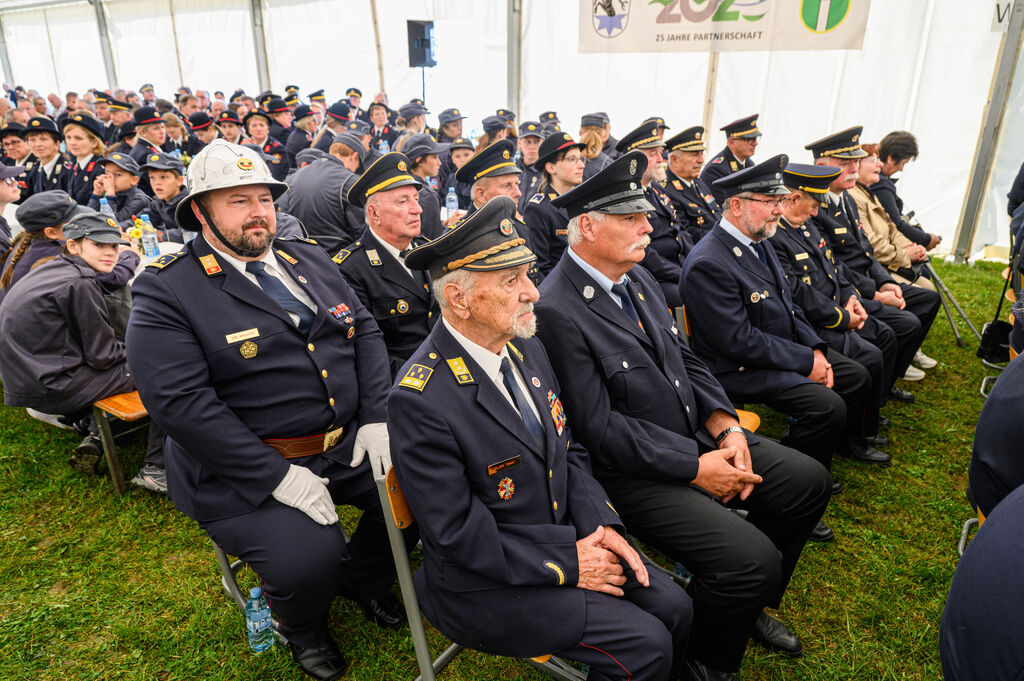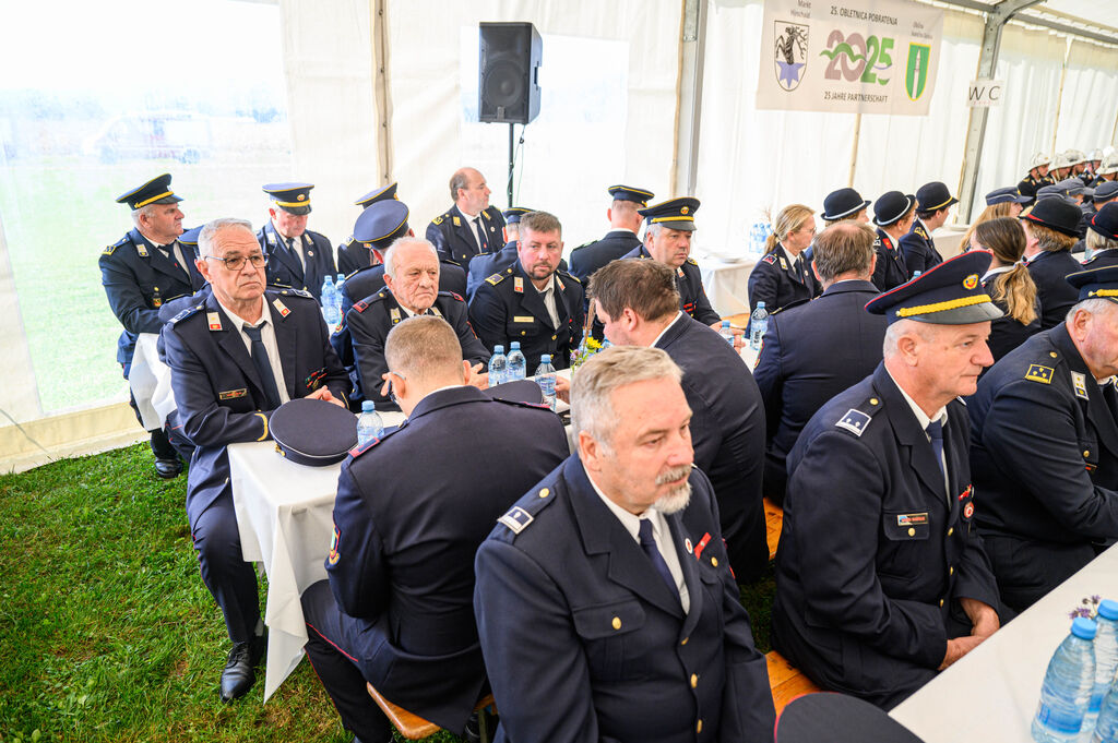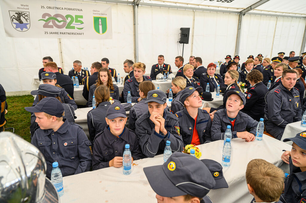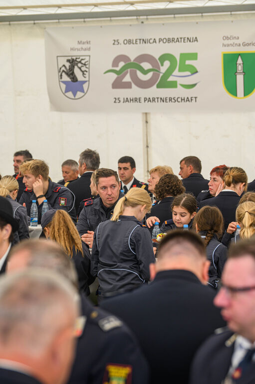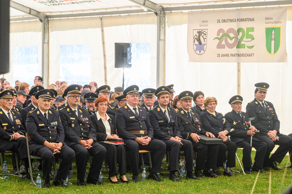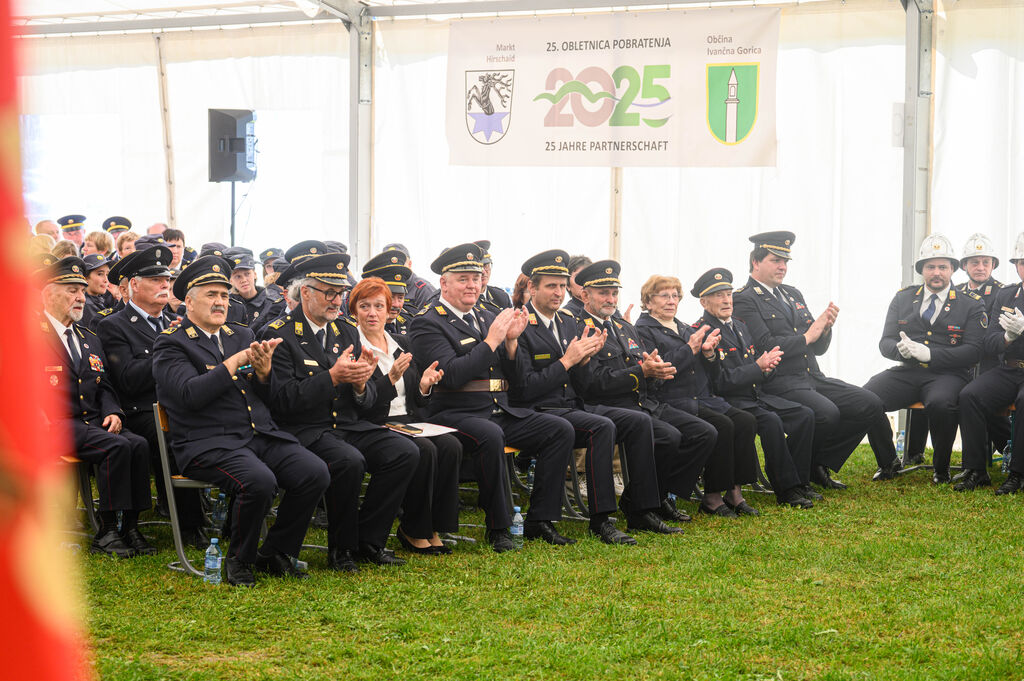 Zbrane so nagovorili tudi župan pobratene občine Hirschaid Klaus Homann, podpredsednik Gasilske zveze Slovenije, Franc Bradeško ter župan občine Ivančna Gorica Dušan Strnad, ki je vodstvu gasilske zveze ob visokem jubileju izročil spominski kovanec Prijetno domače. Ob tem se je spomnil tudi Lojzeta Ljubča, za katerega je dejal, da bi bil na ta jubilej izjemno ponosen: