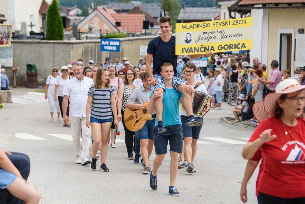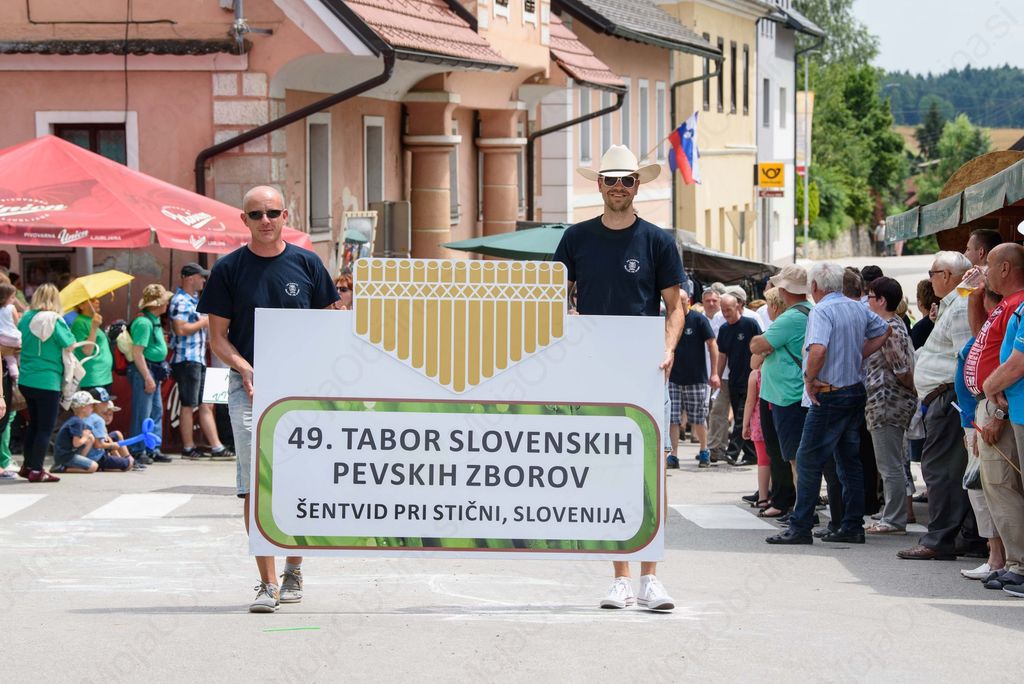 Osrednji nedeljski program se je začel s slavnostno povorko vseh sodelujočih zborov v spremstvu konjenikov Konjerejskega društva Radohova vas in godbe iz Dobrepolja. Koncert združenih pevskih zborov je potekal na šolskem športnem igrišču, ki ge je letos Občina Ivančna Gorica posodobila in obnovila. Ob številnih gostih, tudi županu Dušanu Strnadu in direktorju Javnega sklada RS za kulturne dejavnosti mag. Marku Repniku, je pevce najprej nagovoril predsednik Tabora slovenskih pevskih zborov Matej Šteh, ki se je zborom zahvalil za njihov doprinos k ohranjanju slovenske ljudske pesmi. Organizatorji se zavedajo, da je potrebno veliko truda in dobre volje, da zbori v svoj vsakoletni program uvrstijo nastop v Šentvidu, ki ga obiščejo iz vseh koncev Slovenije in tujine. Kot je še povedal je za izvedbo letošnje prireditve skrbelo več kot sto prostovoljcev domačinov iz različnih društev (kulturna društva Vidovo in Šentviški slavčki, gasilsko, upokojensko in turistično društvo, ZŠAM Ivančna Gorica in konjerejsko društvo Radohova vas). Pri organizaciji so vključeni tudi šentviška šola, Občina Ivančna Gorica, Javni sklad RS za kulturne dejavnosti Zveza kulturnih društev občine Ivančna Gorica in Zavod Prijetno domače. Kot je še povedal, se upravni in organizacijski odbor že pripravlja tudi na prihodnje leto, ko bo Tabor praznoval okrogli jubilej.
