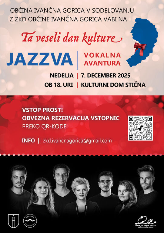Vabljeni na nepozaben večer z zasedbo Jazzva, ki ga za vas pripravlja Občina Ivančna Gorica v sodelovanju z ZKD občine Ivančna Gorica. Koncert bo v nedeljo, 7. decembra 2025, ob 18. uri v Kulturnem domu Stična.