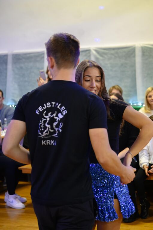 Ob sambi in jivu smo dočakali vrhunec večera, plesno predstavo najboljših in najbolj vztrajnih dolgoletnih plesalcev krškega Fejstplesa. Odlikuje jih izjemna eleganca, spretnost in lahkotnost. Plesna prezenca, ki daleč presega okvire krškega odra. Predstavo so zaključili seniorji, ki življenjsko energijo ohranjajo z druženjem ob plesu. Zaploskali smo jim ob tangu, angleškim valčku in techno swingu.