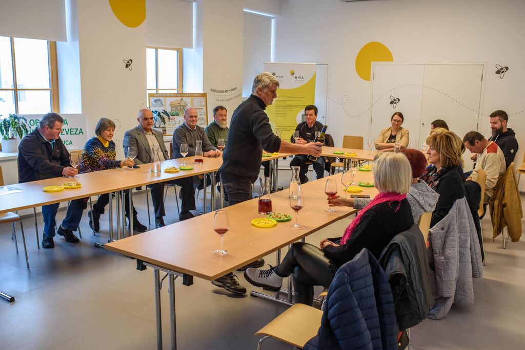 V Hiši kranjske čebele v Višnji Gori je Turistično društvo Polževo organiziralo pokušino vin iz priznane vinske kleti Brda iz Goriških Brd. Njihovo vino Quercus je bilo na jesenskem martinovanju na Polževem najbolj všečno vino. Malo za njim pa je bilo ocenjeno tudi domače vino iz Vinogradniško-sadjarskega društva Debeli hrib, zato smo povabili tudi njih.