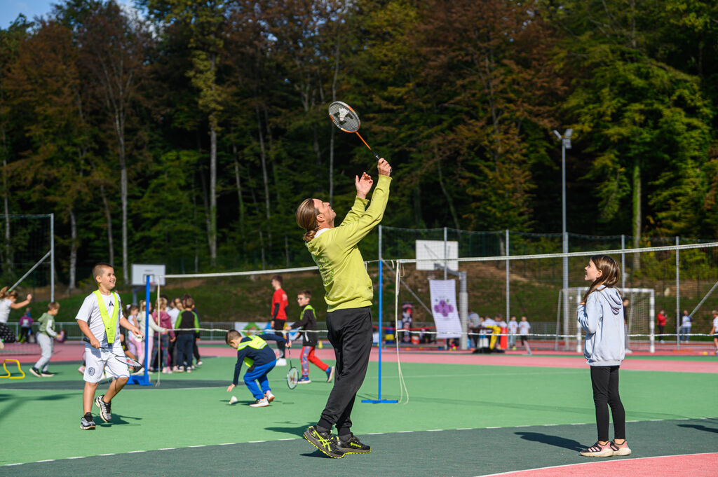 Mini olimpijado je, v družbi predstavnikov Olimpijskega komiteja, enega najuspešnejših slovenskih orodnih telovadcev Mitje Petkovška ter maskote Foksija, na športnem kompleksu odprl podžupan Tomaž Smole.