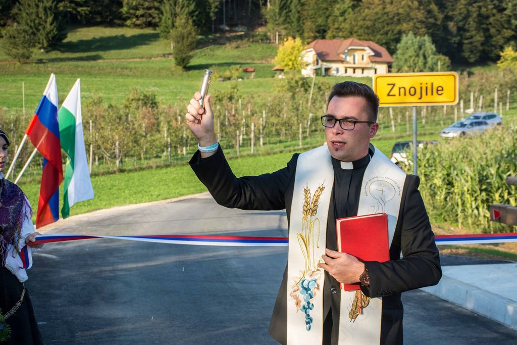 Most je blagoslovil novi krški župnik Dejan Pavlin, po končanih nagovorih pa so ga s prerezom traku predali svojemu namenu. Program so obogatili člani krškega kvarteta.