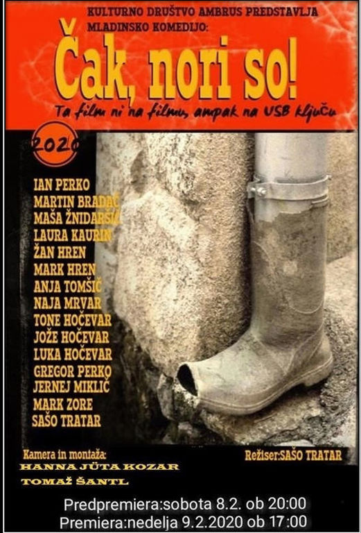 Minuli vikend so v Ambrusu predstavili prvi celovečerni mladinski film v občini Ivančna Gorica z naslovom ČAK, NORI SO! Podvig, ki je na dan kulturnega praznika napolnil ambruško dvorano, je nastal pod okriljem Kulturnega društva Ambrus – Otroška dramska skupina. Vse zasluge, da se je projekt prevesil z norega v genialno ima domačin Sašo Tratar, ki je idejo izpeljal do realizacije.