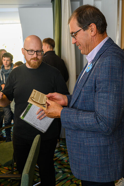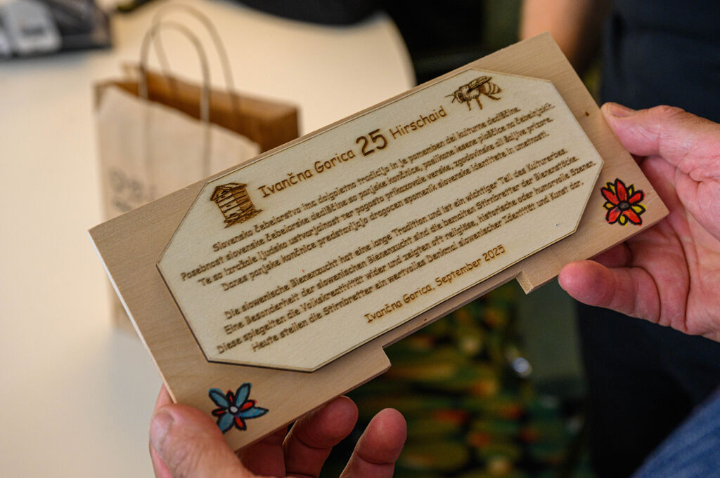 V zahvalo za vsakoletno finančno podporo Občine Ivančna Gorica pri izmenjavah učencev je župan prejel ročno izdelano spominsko panjsko končnico, ki so jo izdelali na Osnovni šoli Zagradec.