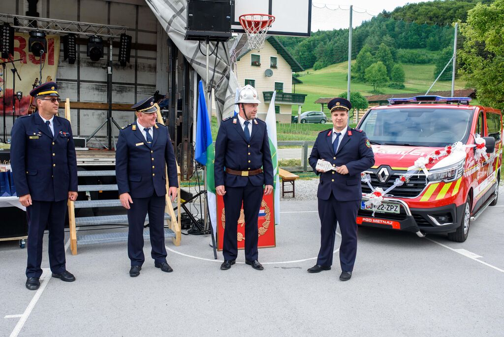 Novo vozilo je blagoslovil stiški župnik p. Branko Petauer, za glasbeno popestritev pa so poskrbele članice Ženske vokalne skupine Brinke in Godba Stična. Praznovanje v Metnaju se je nadaljevalo še pozno v noč z gasilsko veselico ob zvokih ansambla Foksnerji.