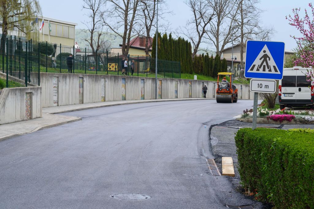 Poleg kompletne prenove cestišča je Občina preplastila še parkirne prostore pri mozaikih ob podporni steni pod Vrtcem Čebelica. V prihodnjih dneh sledi še zaris talnih oznak. Asfalterska dela si je pred dnevi ogledal tudi župan Dušan Strnad.